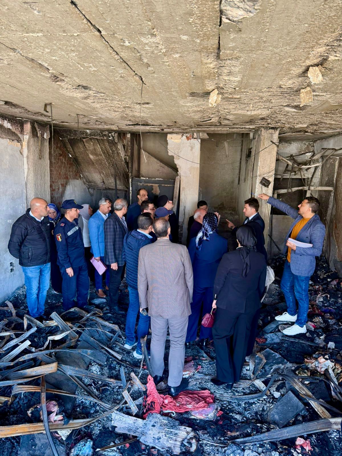 معاينة فريق التحقيق لحريق سوق الخواجات بالمنصورة.