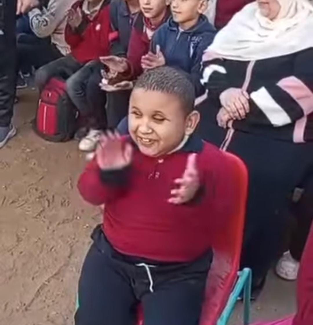 خلال إحدى الحفلات المدرسية بمركز ديروط بأسيوط، وثقت الكاميرا مشهدًا عفويًا للطفل زياد الكفيف وهو جالس على كرسيه المتحرك، يضحك ويشير بيديه فرحًا، يتفاعل مع زملائه الذين يحيطون به بابتساماتهم.