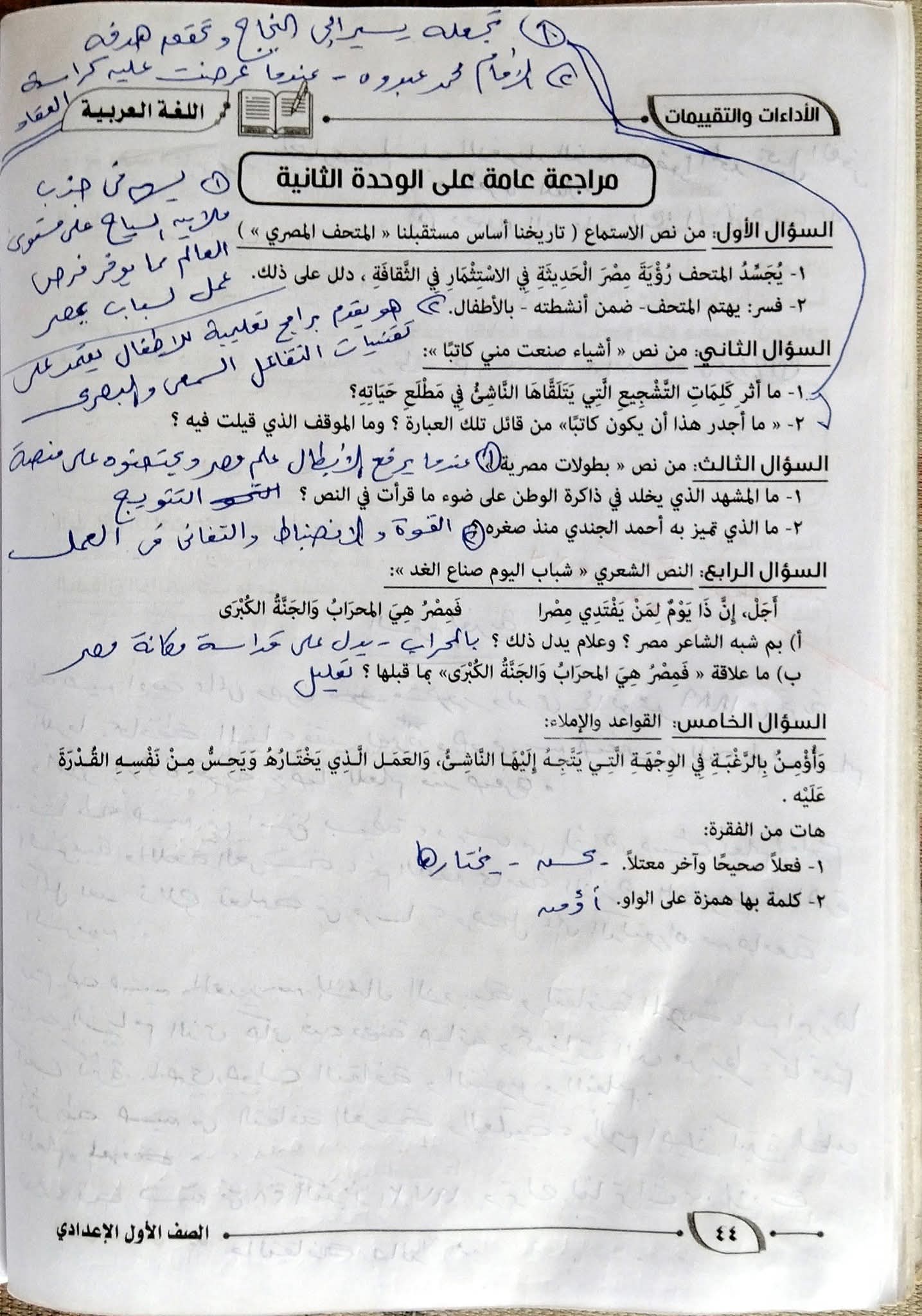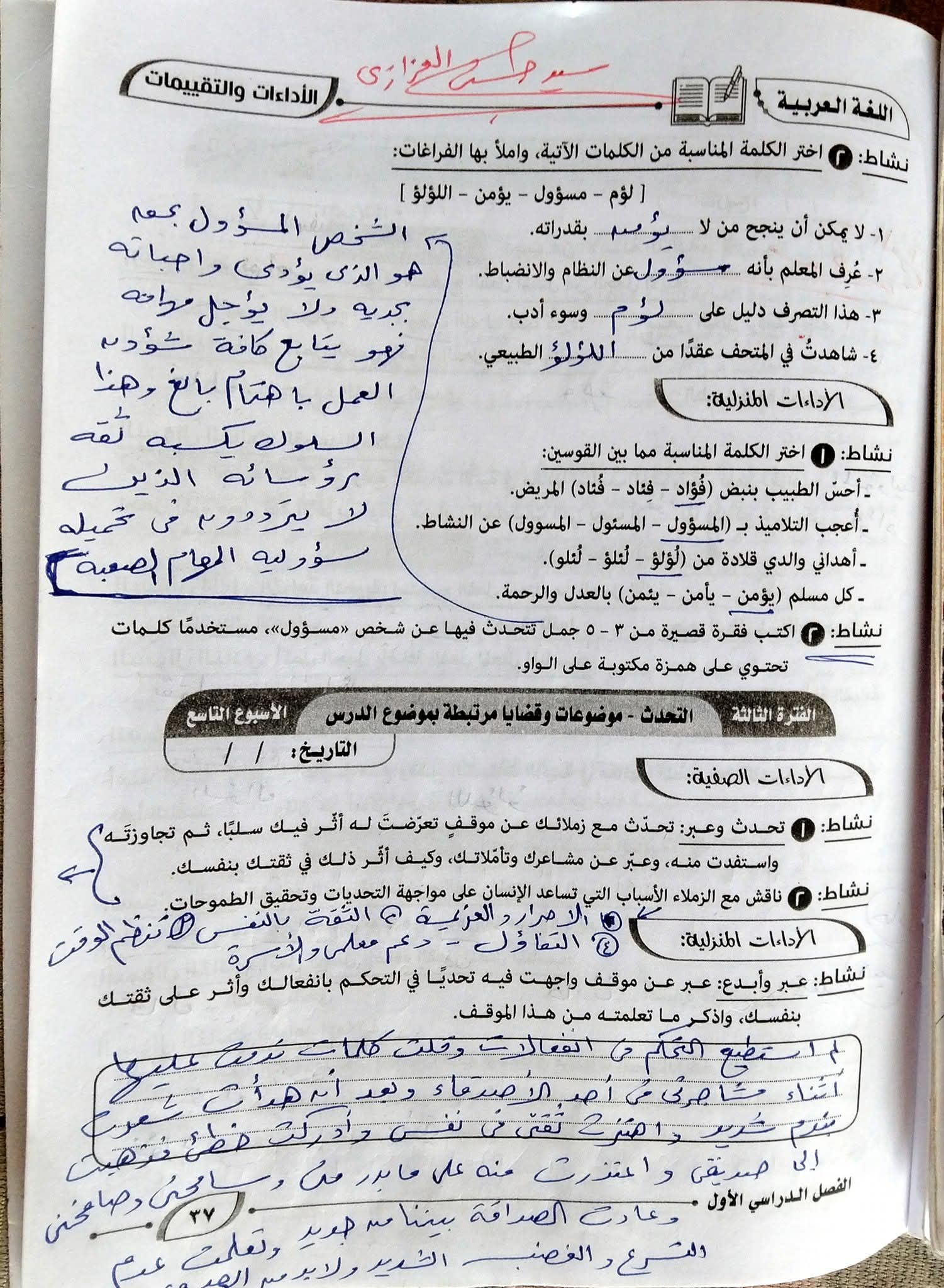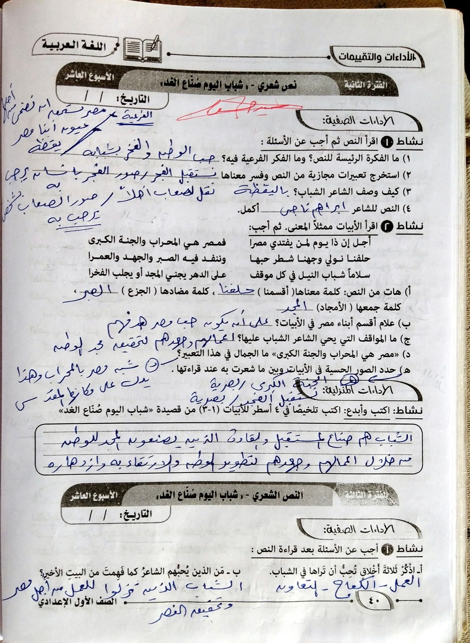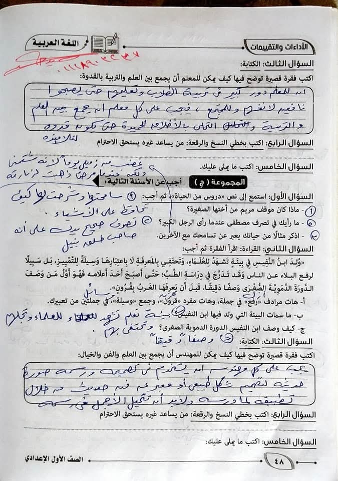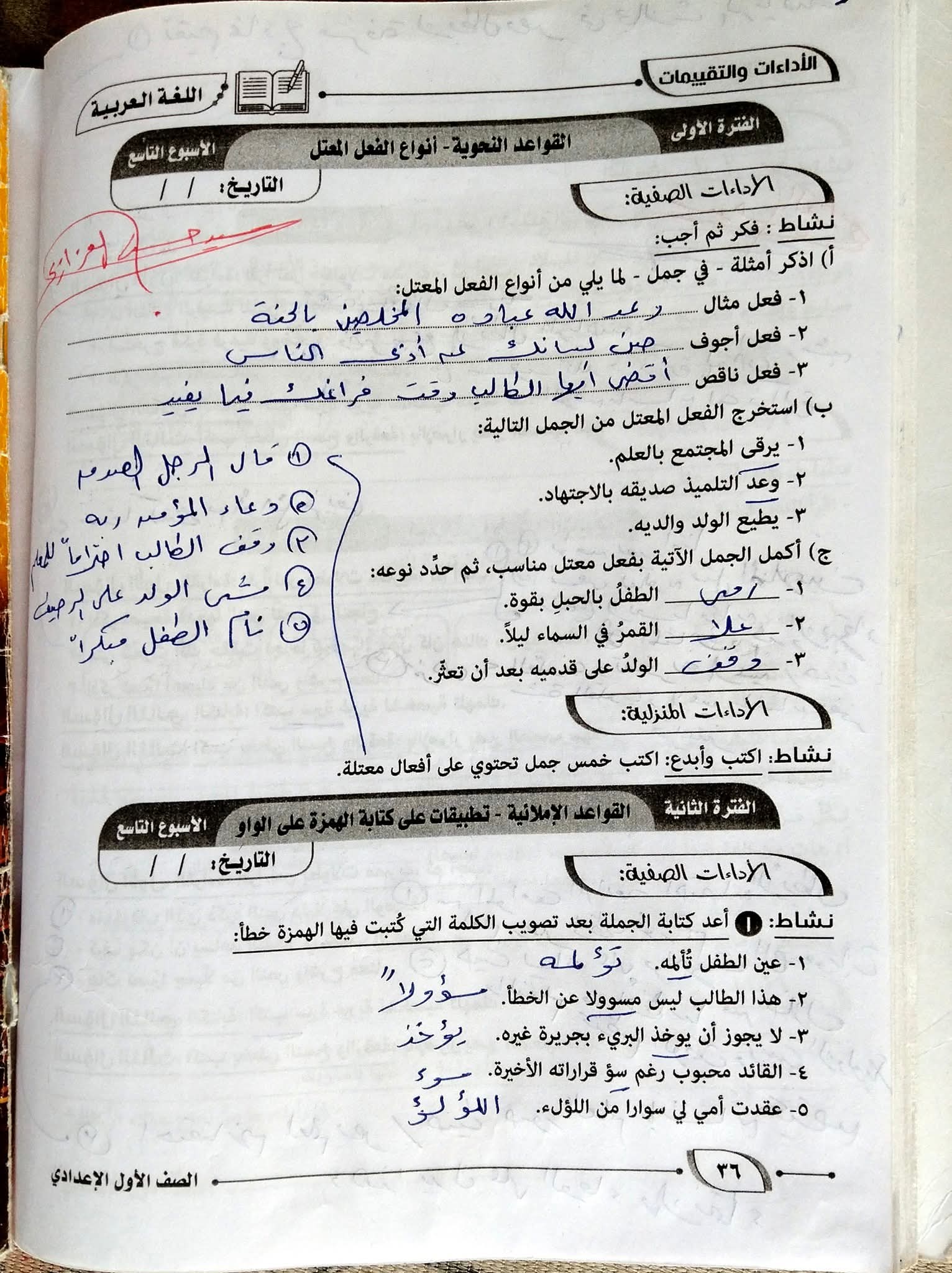 حل تدريبات الكتاب المدرسي اللغة العربية للصف الأول الإعدادي