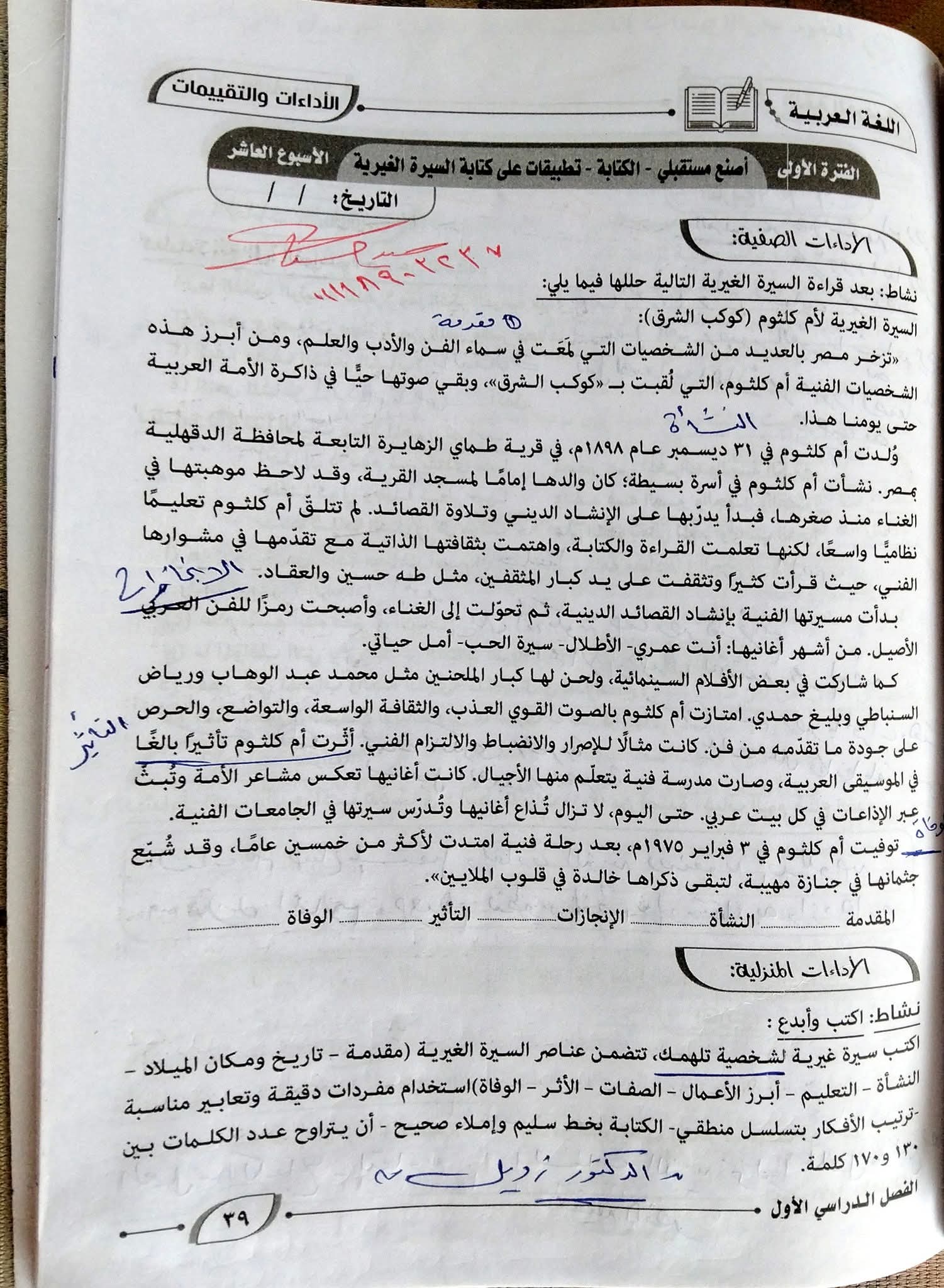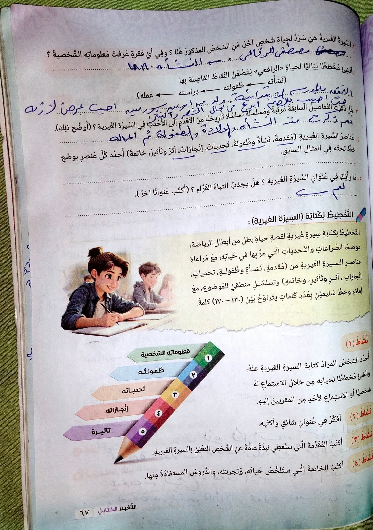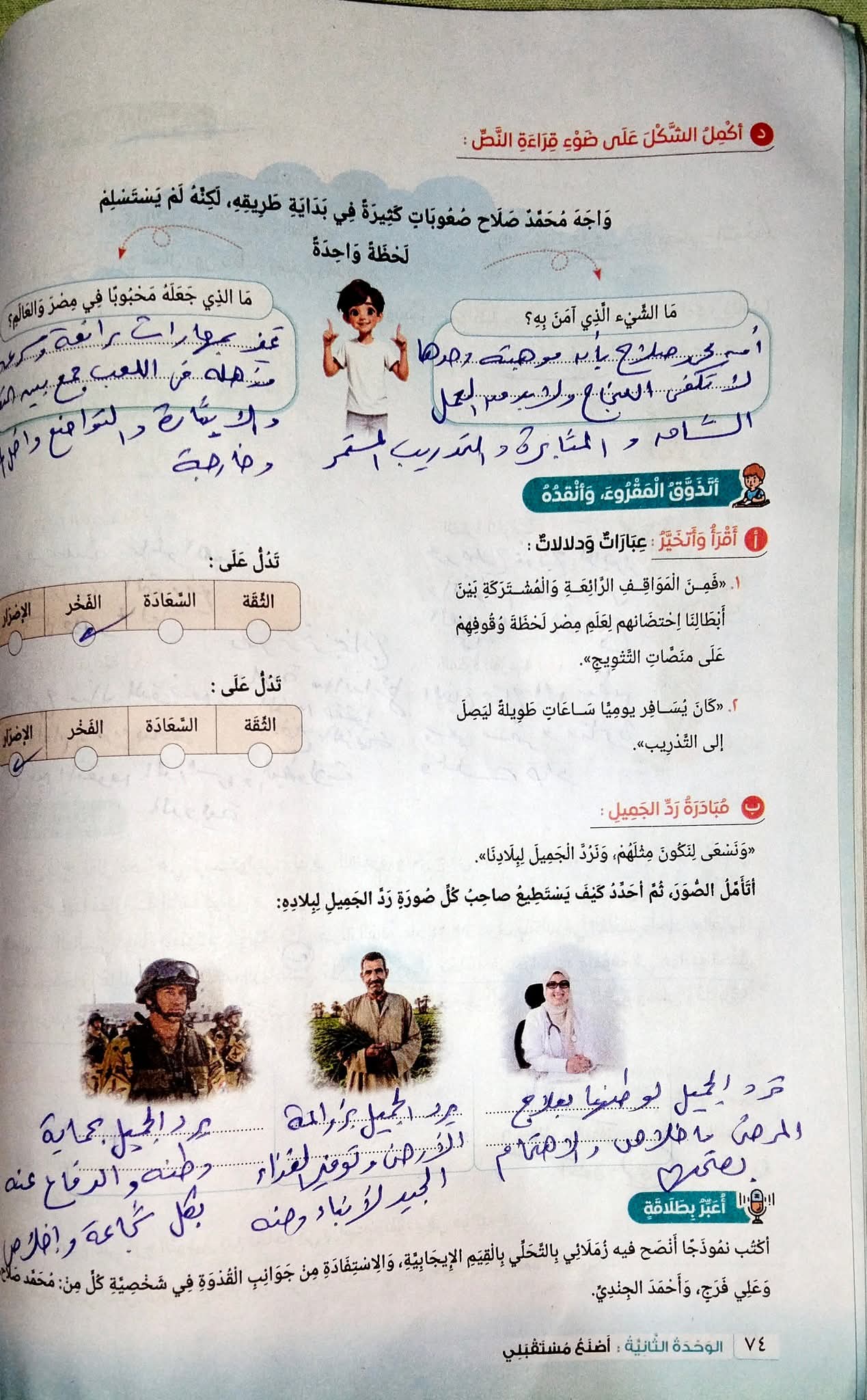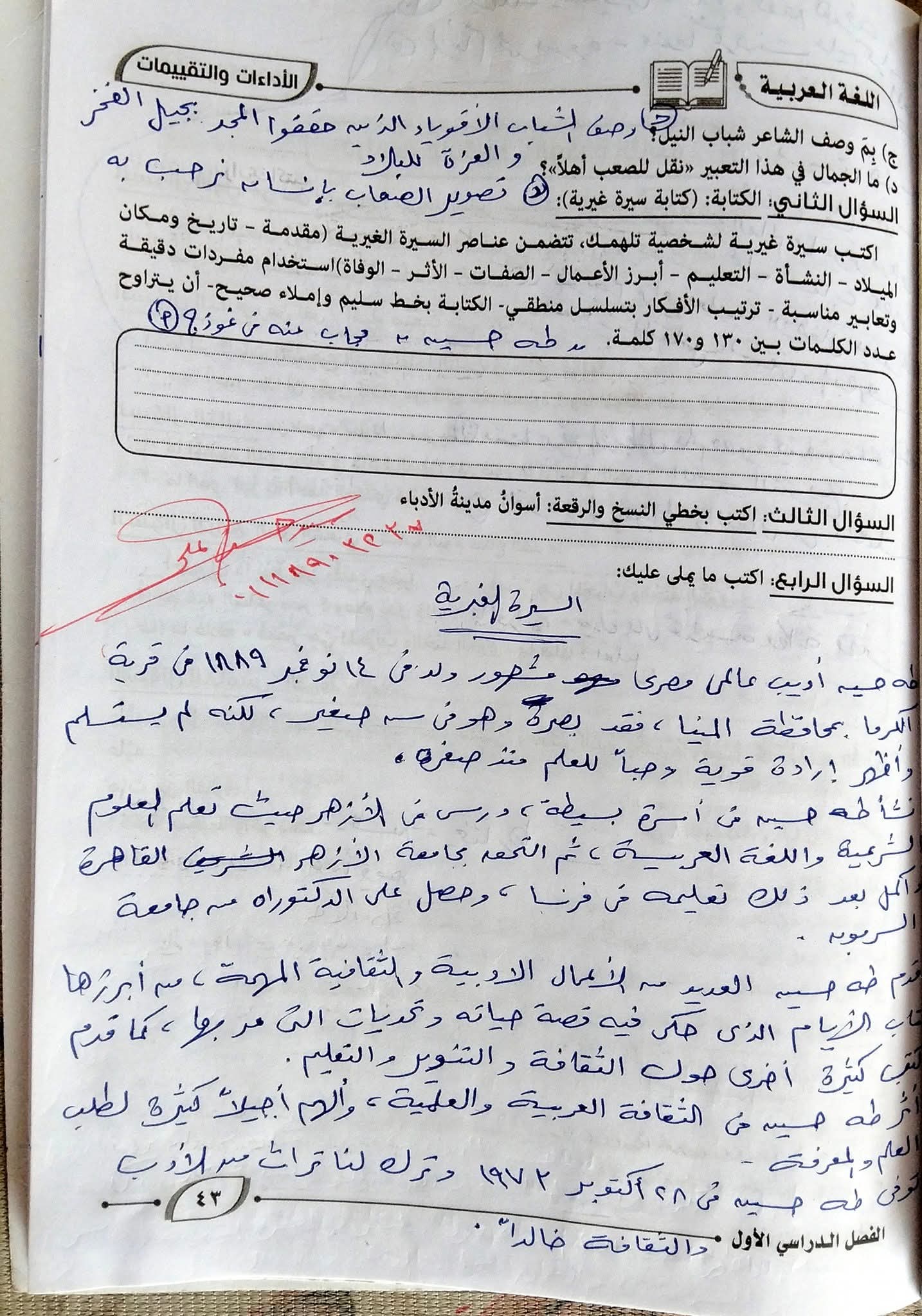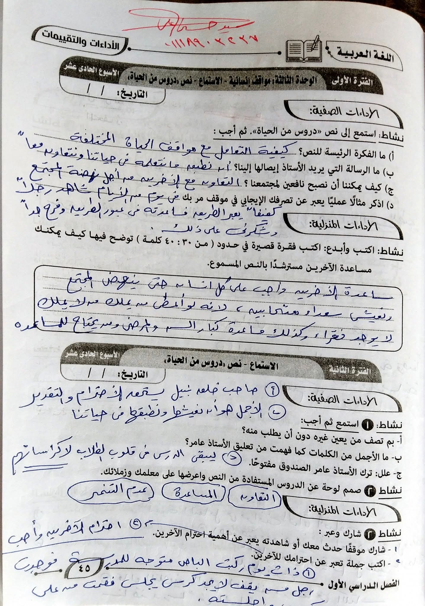 حل تدريبات الكتاب المدرسي اللغة العربية للصف الأول الإعدادي