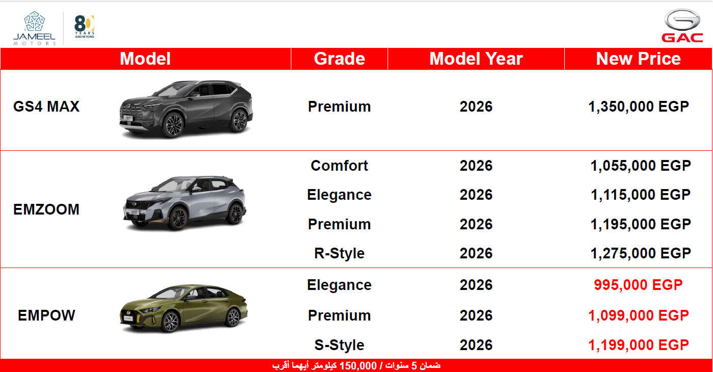 كشفت شركة جميل موتورز عن تخفيض أسعار سيارة GAC Empow موديل 2026 السيدان الرياضية التي تجمع بين الأداء القوي والتكنولوجيا المتطورة والقيمة الاستثنائية في السوق المصري، بقيمة تصل 141 ألف جنيه.