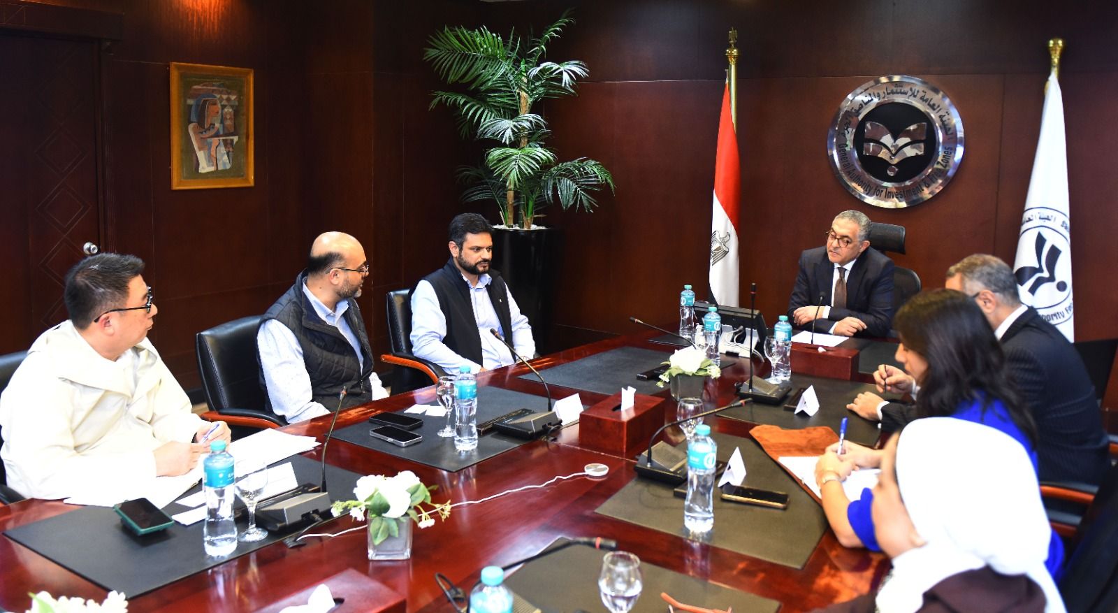 جانب من اللقاء بين هيبة، وفد من شركة Fountain Set Limited الصينية، وشركة Elegance Apparel Garments Freezone