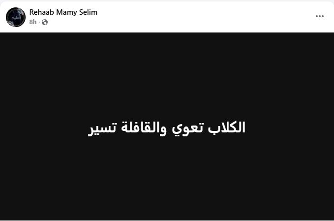 وفي أول تعليق لها بعد الحادث، نشرت رحاب، منشورًا مقتضبًا عبر “فيسبوك”، قالت فيه: "الكلاب تعوي، والقافلة تسير"، في إشارة واضحة إلى تجاهلها للتصريحات والأنباء المنتشرة حول الواقعة.