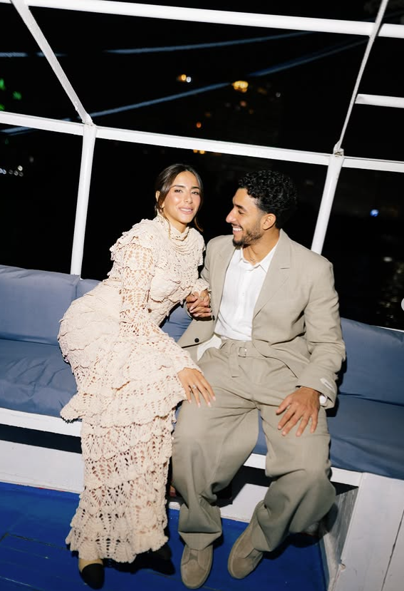نشر مرموش عبر “إنستجرام” صورًا تجمعه بخطيبته جيلان الجباس، داخل مركب نيلي معلقًا : “ حلمي أصبح حقيقة، 11.11”، في عبارة تشير إلى أن موعد الخطبة الحقيقي كان في 11 نوفمبر الماضي.