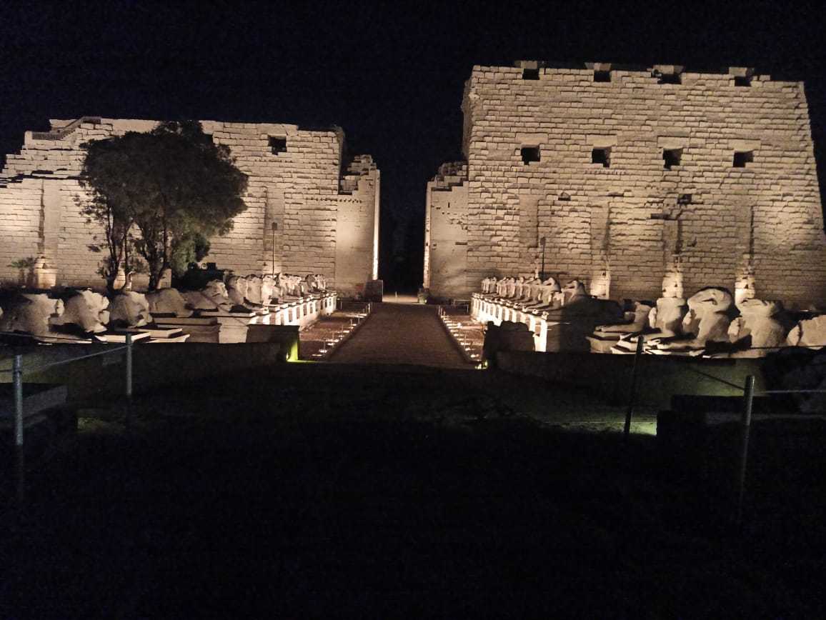 شهد معبد الكرنك واحدًا من أجمل عروض الإضاءة خلال احتفالات محافظة الأقصر بعيدها القومي، بعدما أضاءت شركة مصر للصوت والضوء والتنمية السياحية واجهة المعبد بمجموعة مؤثرات ضوئية أظهرت عظمة هذا الصرح التاريخي في أبهى صوره.