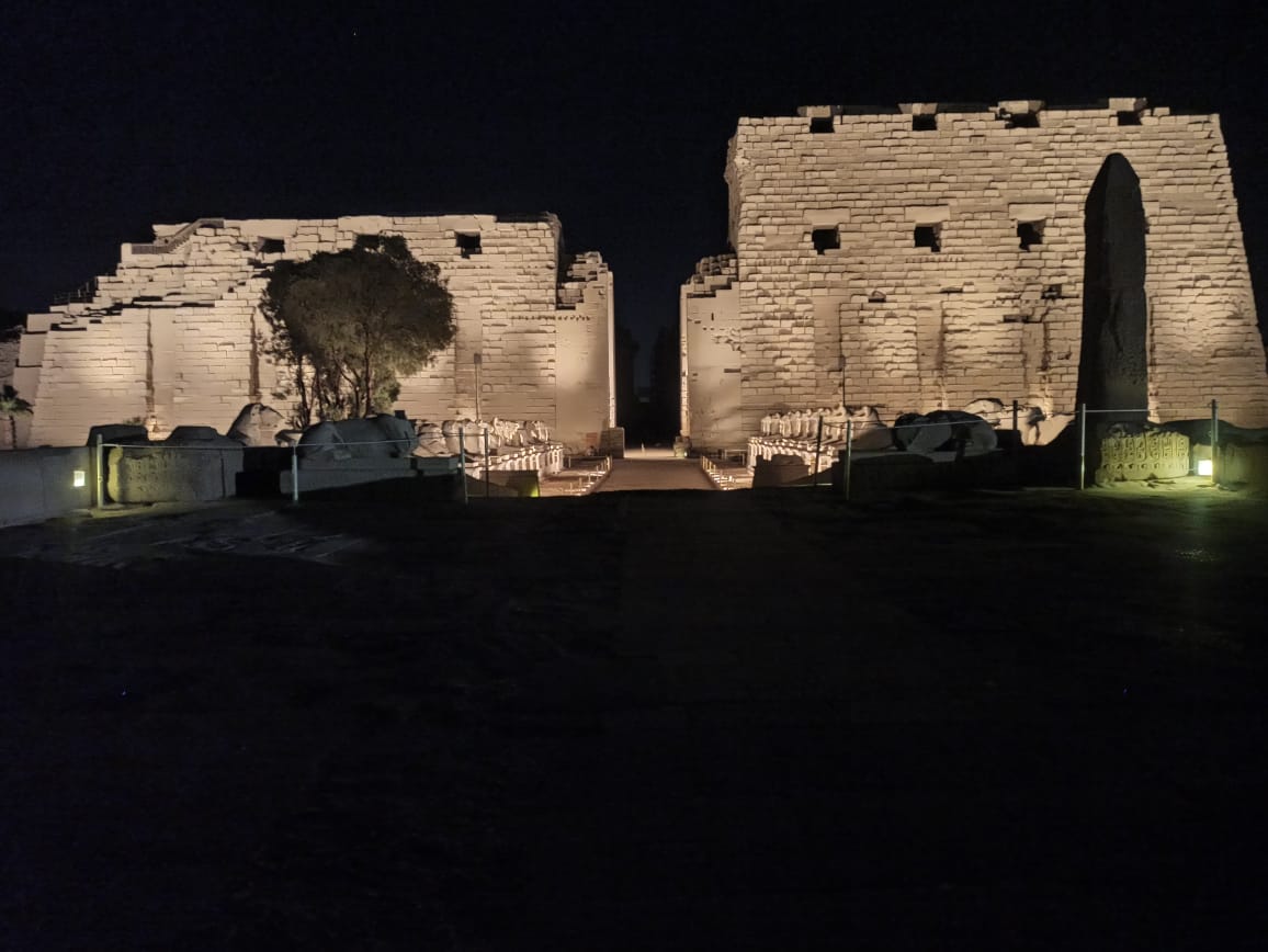 صرح تاريخي في أبهى صورة، واجهة الكرنك تلمع بأضواء ملونة