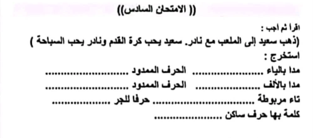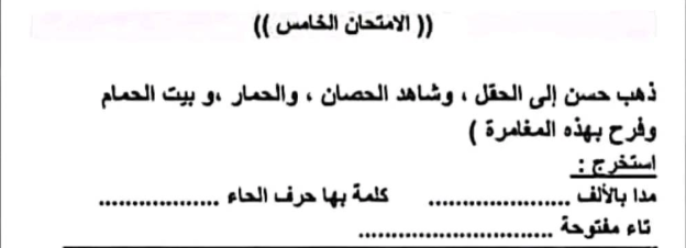 حل تقييم اللغة العربية للصف الثاني الابتدائي