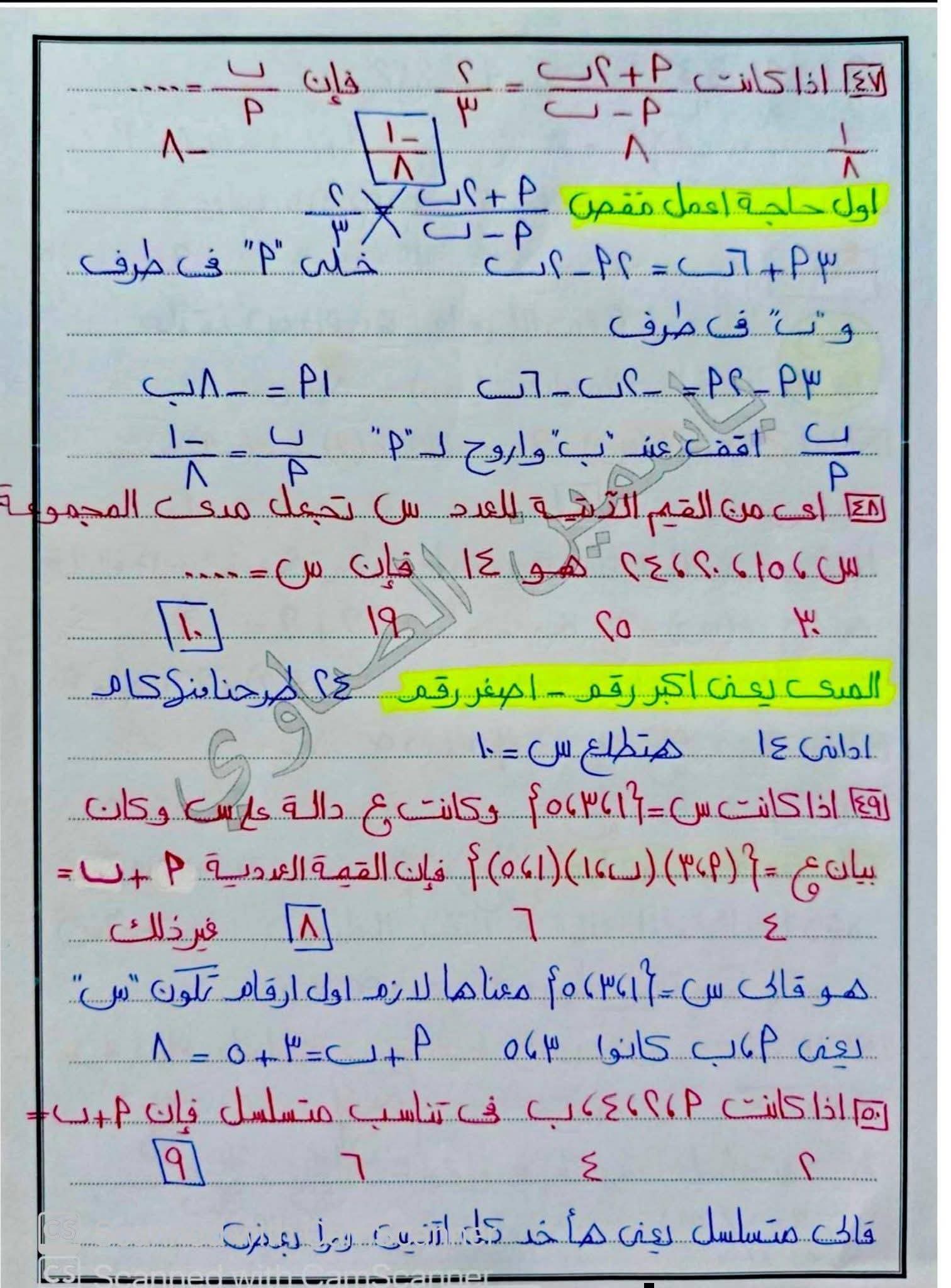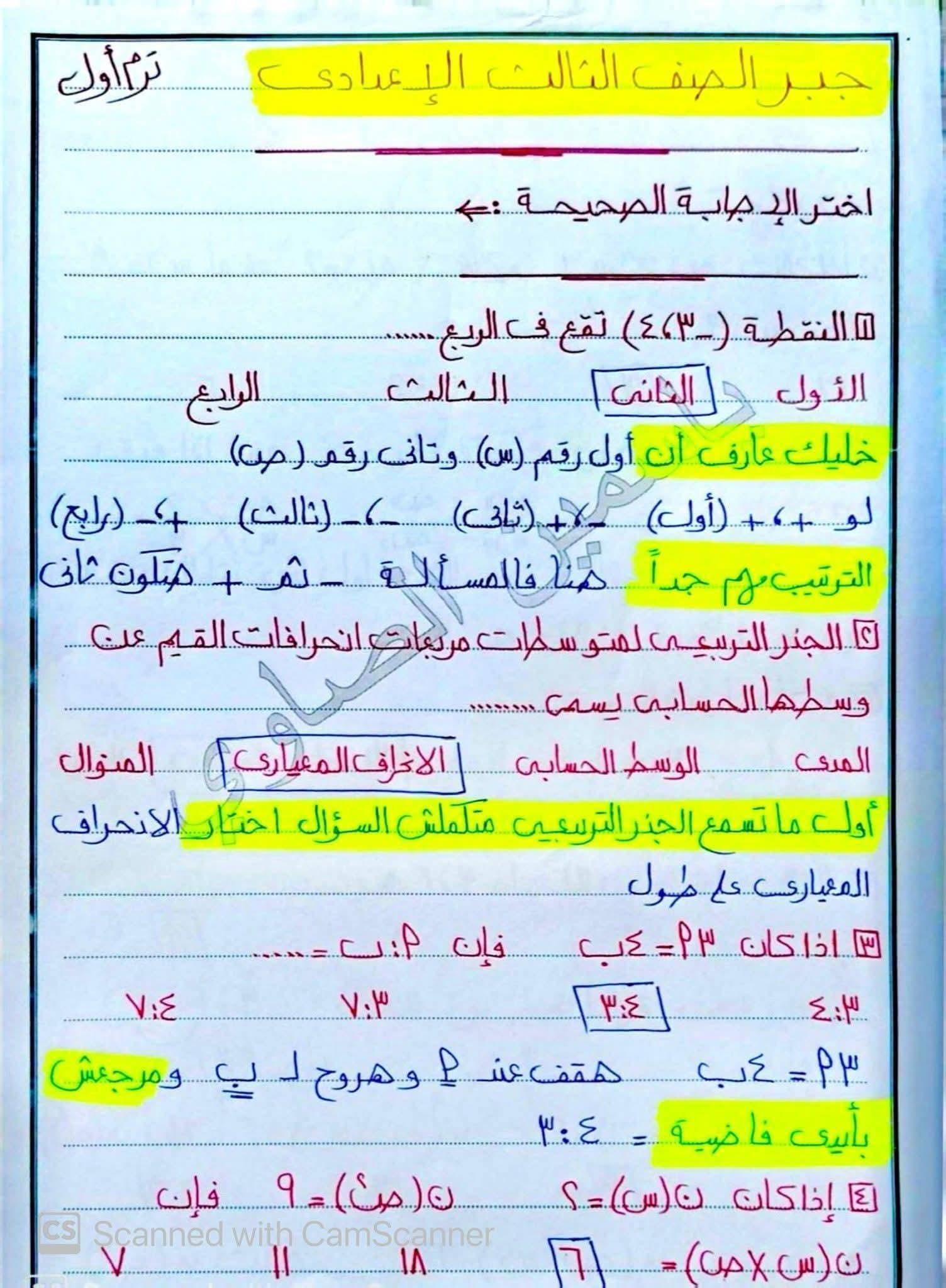مراجعة جبر للصف الثالث الاعدادي الترم الأول