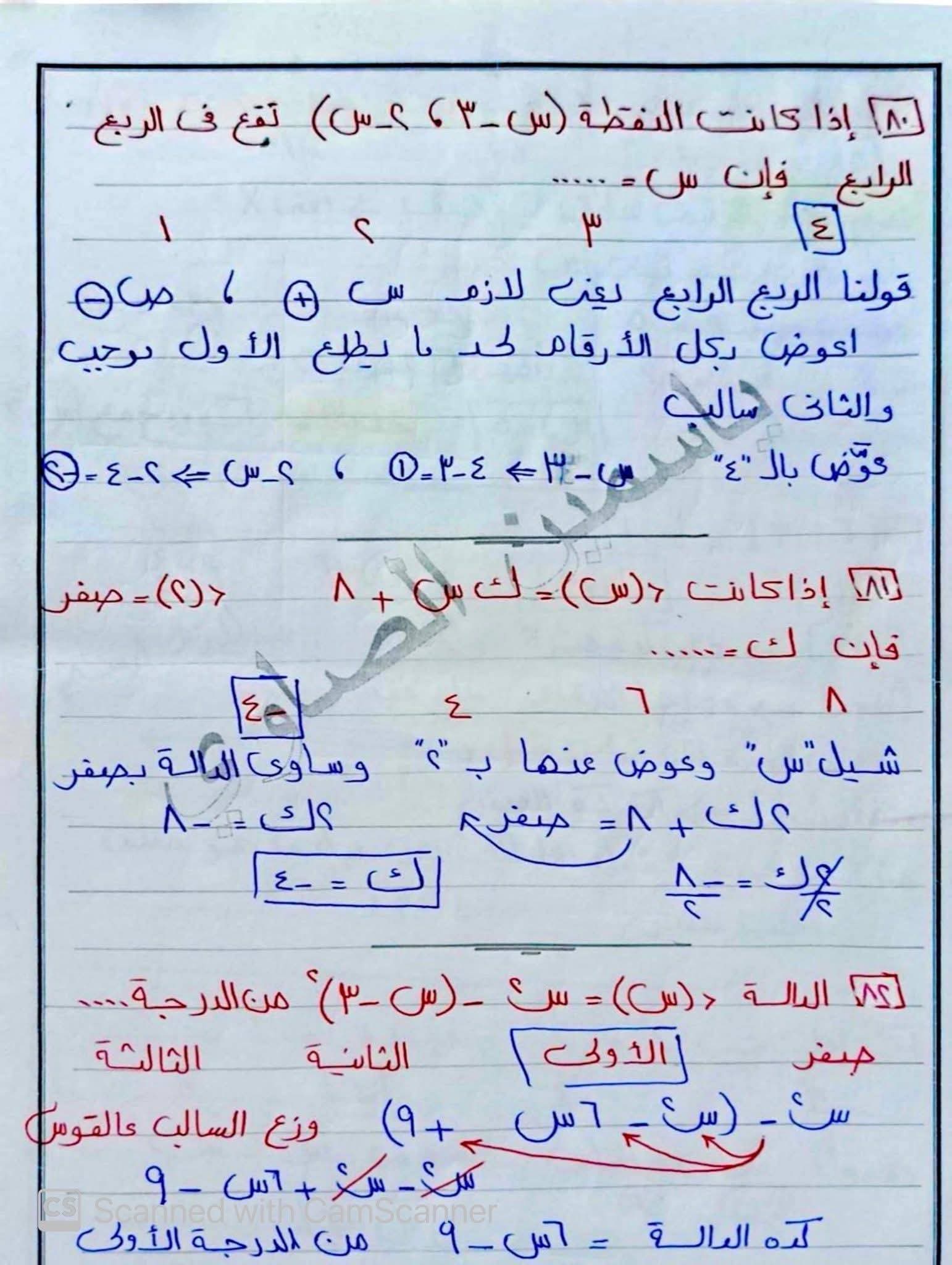 مراجعة جبر للصف الثالث الإعدادي الترم الأول، أهم الأسئلة