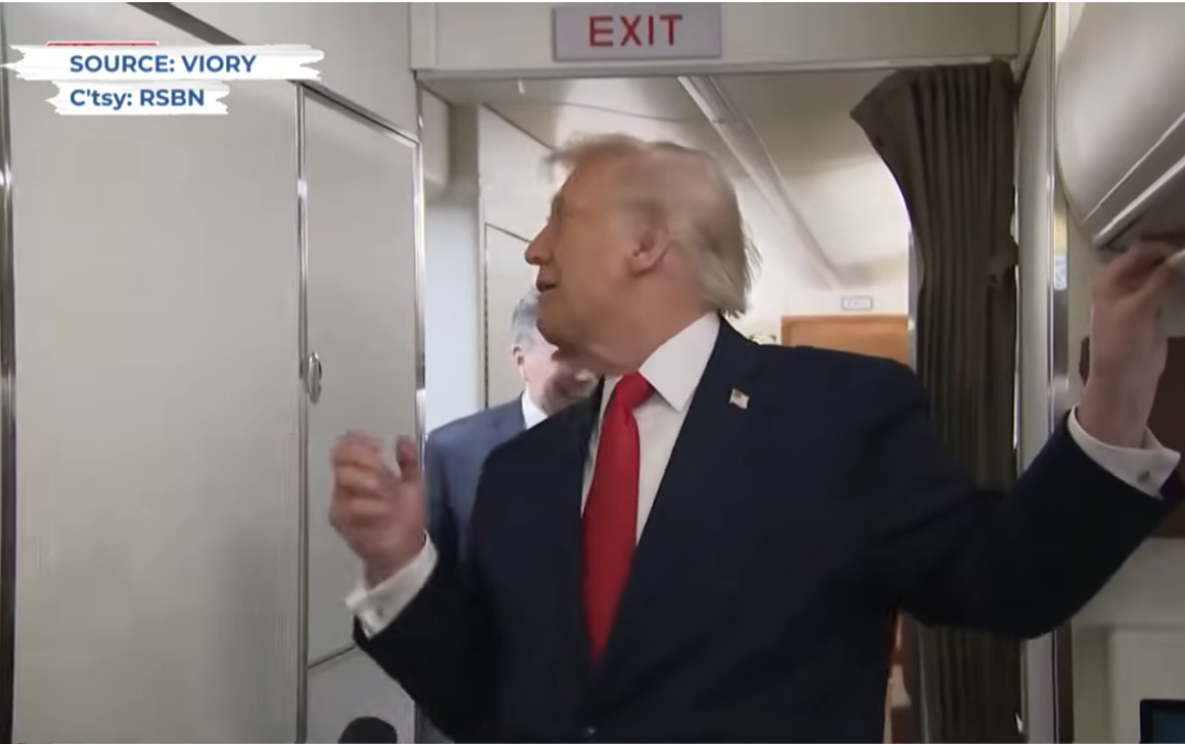 "هزار على باب الحمام"، ترامب يثير الضحك على متن طائرة الرئاسة (فيديو)