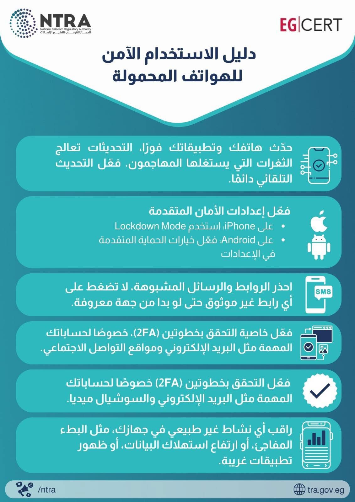 يأتي هذا التحرك ضمن جهود الجهاز المتواصلة لبناء بيئة رقمية آمنة وتشجيع المستخدمين على الالتزام بإجراءات الحماية الأساسية، حيث تضمن مجموعة من الإرشادات العملية التي تساعد مستخدمي الهواتف الذكية على حماية أجهزتهم ومعلوماتهم الشخصية من محاولات الاختراق أو الاستغلال.