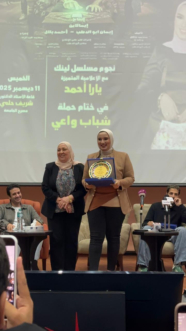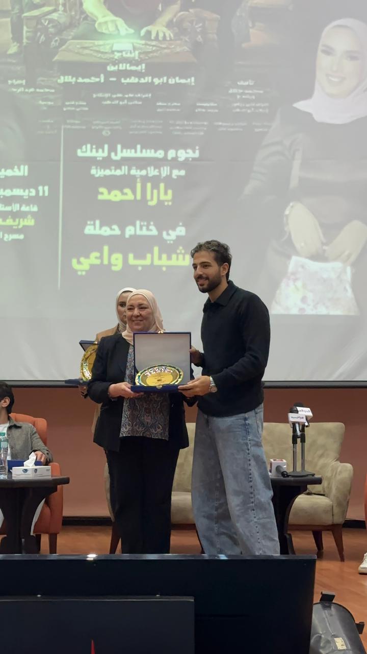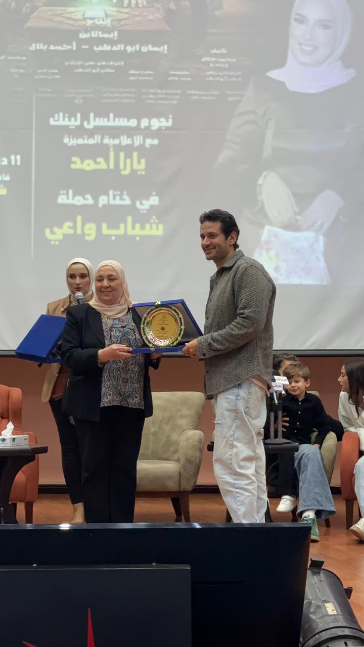 أقيم حفل تكريم لـ أبطال مسلسل “لينك”، اليوم، بالجامعة الروسية في مدينة بدر، وذلك بسبب النجاح الكبير الذي حققه المسلسل في نوفمبر الماضي.