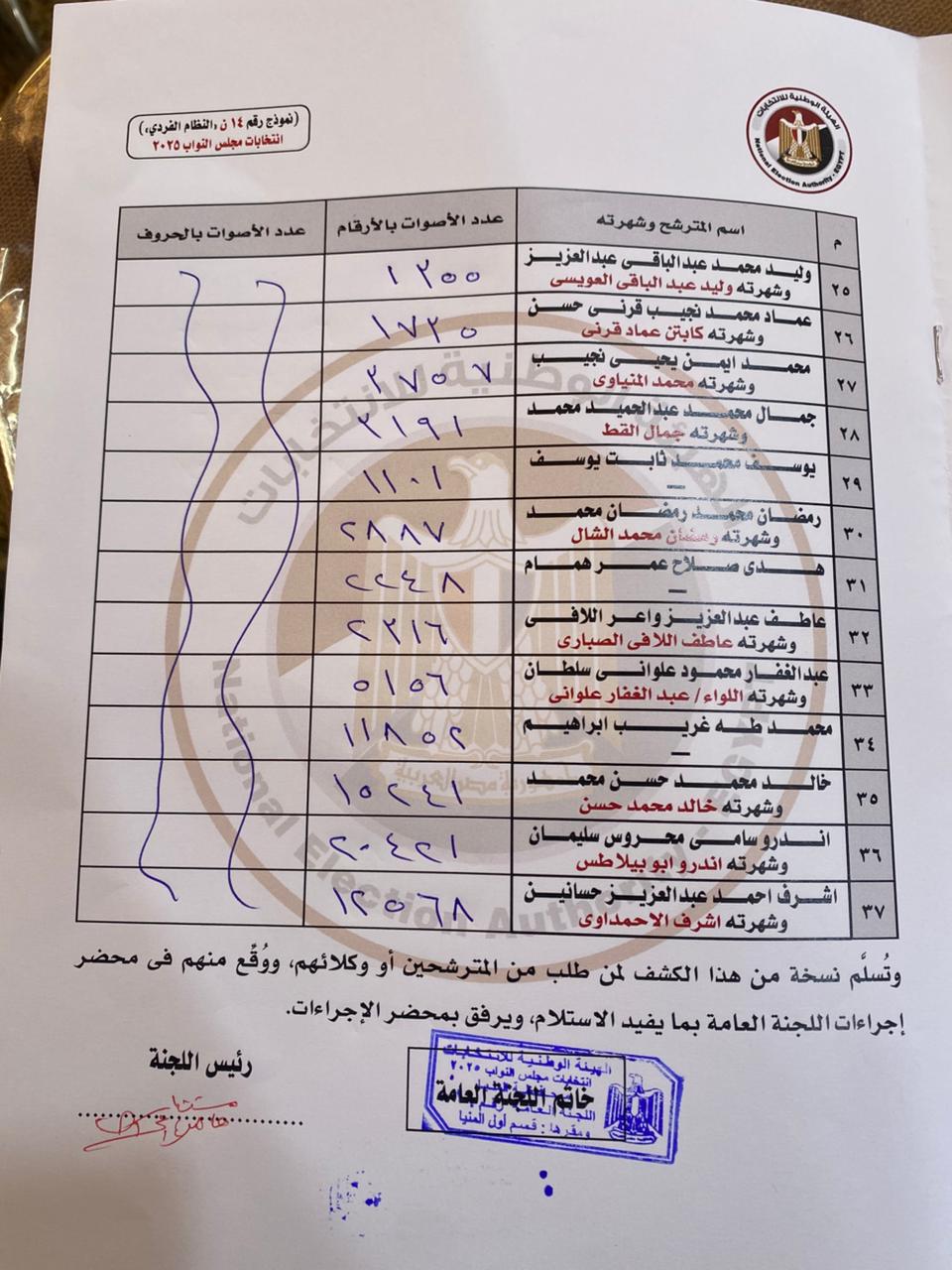 أكدت اللجنة العامة، أن هذه الأرقام تمثل حصرًا عدديًا لنتائج اللجان الفرعية، وليست النتيجة الرسمية والنهائية للانتخابات، حيث تظل الهيئة الوطنية للانتخابات هي الجهة الوحيدة المخولة بإعلان النتيجة النهائية بشكل رسمي وحاسم.