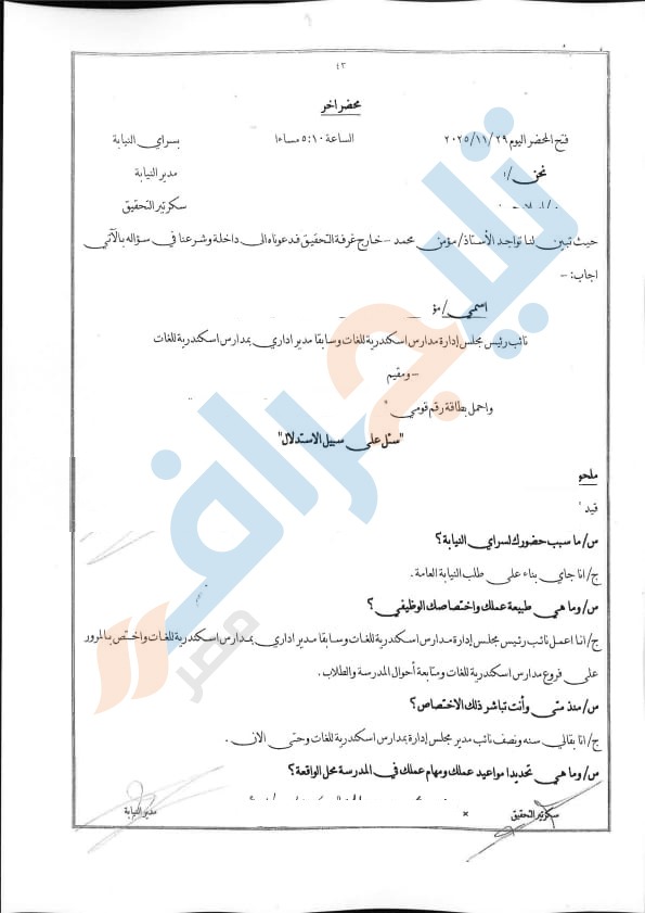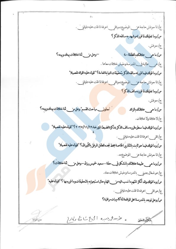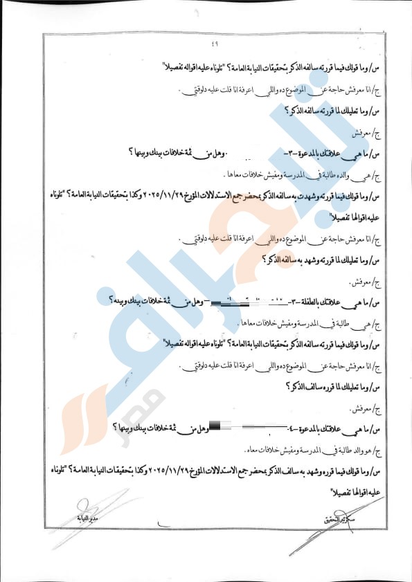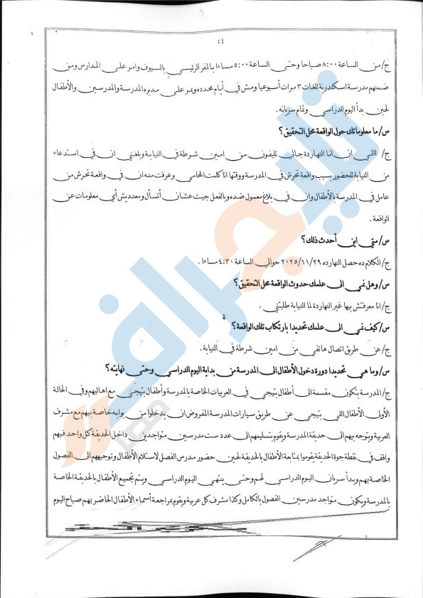 بالمستندات، نص التحقيقات مع نائب رئيس مجلس إدارة مدرسة ضحايا الاعتداء بالإسكندرية