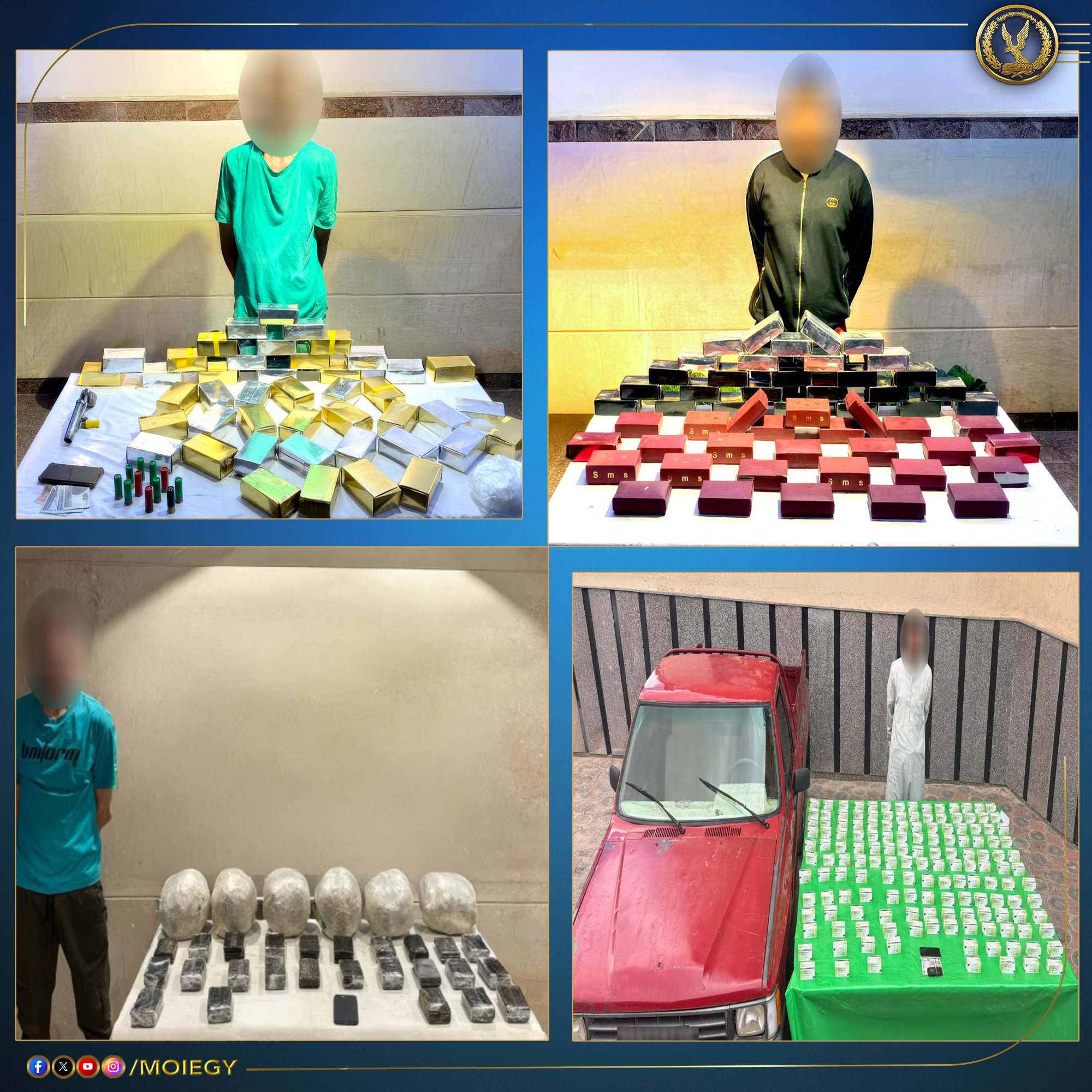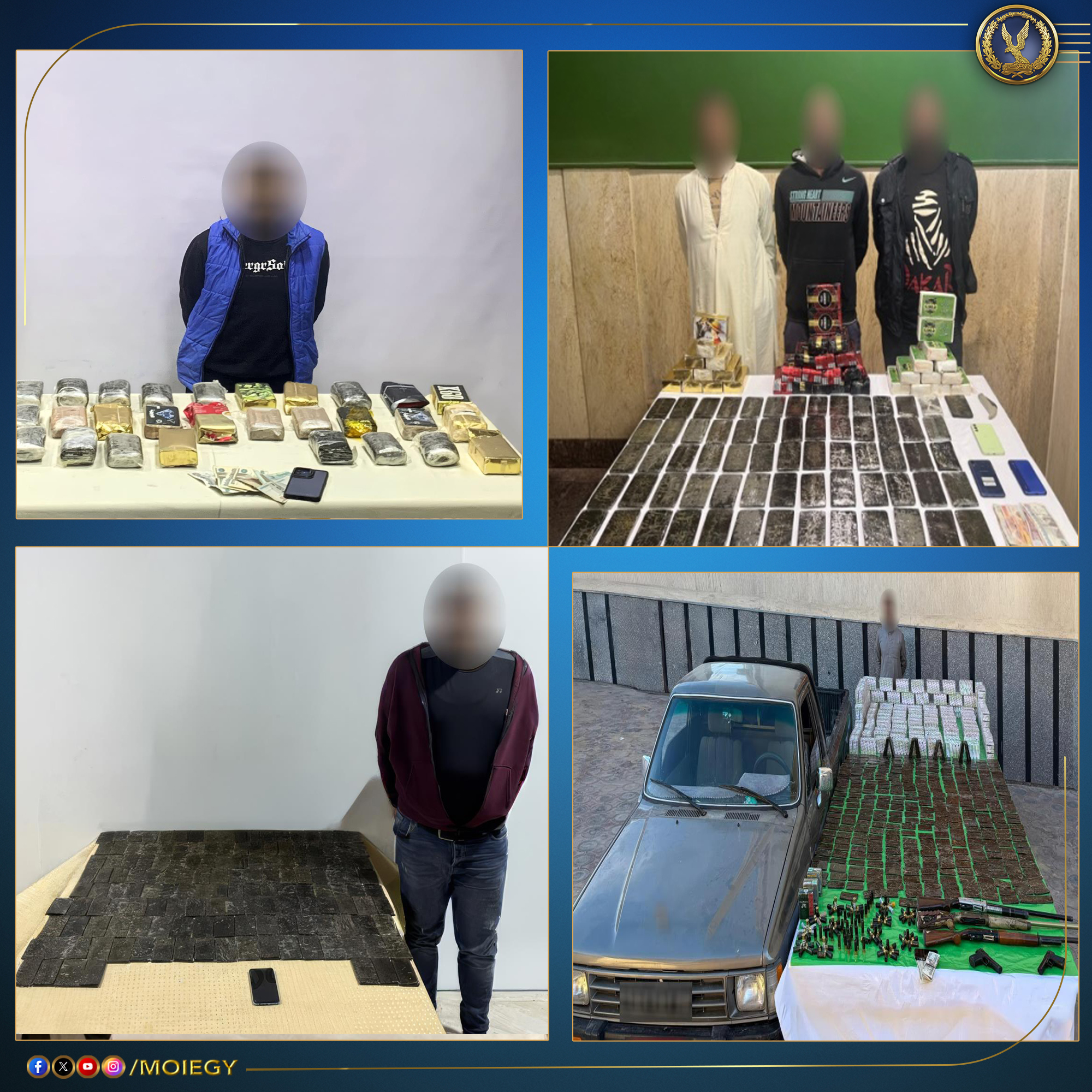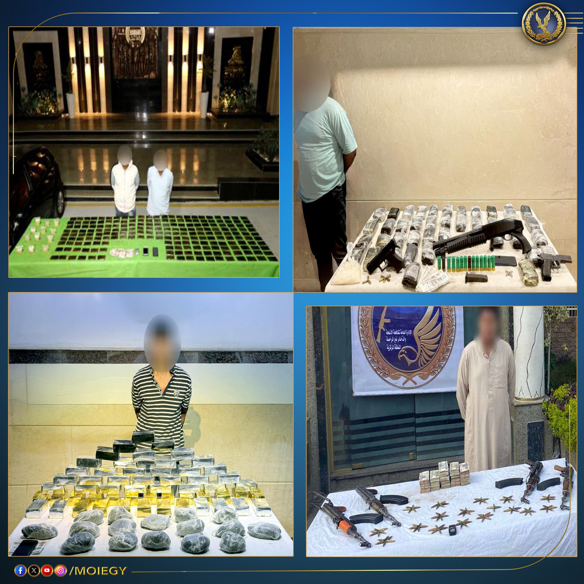 وأكدت معلومات وتحريات قطاعي (الأمن العام - مكافحة المخدرات والأسلحة والذخائر غير المرخصة) بالتنسيق مع أجهزة الوزارة المعنية، قيام بؤر إجرامية بنطاق عدد من المحافظات تضم (عناصر جنائية شديدة الخطورة) بجلب كميات من المواد المخدرة والأسلحة النارية غير المرخصة تمهيداً للاتجار بها.