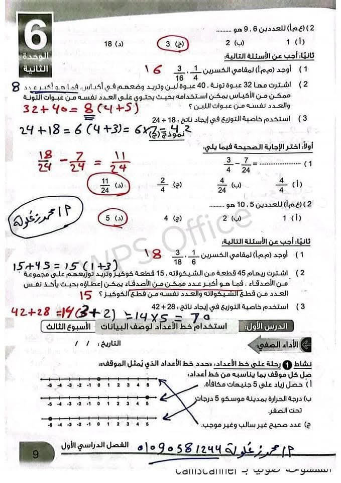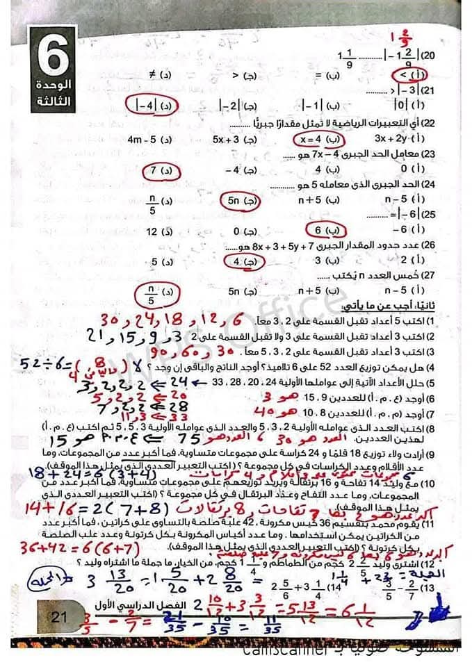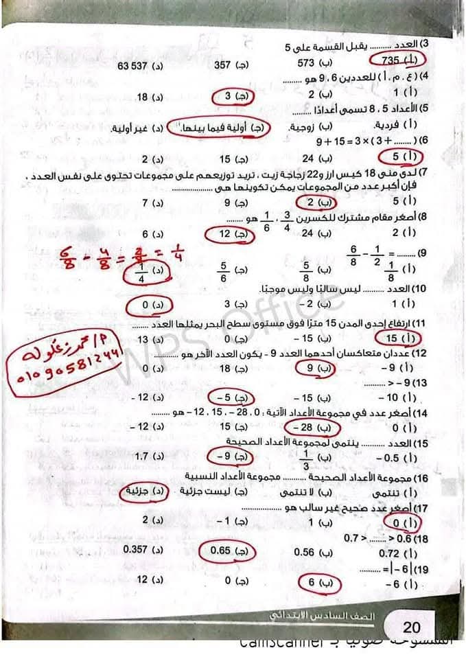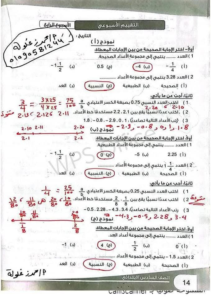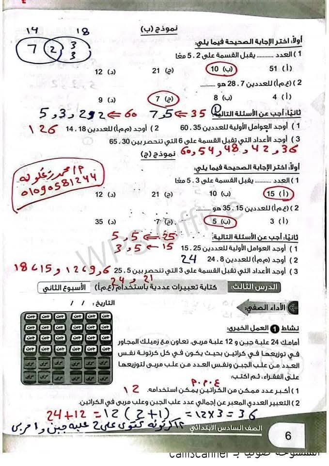 حل كتاب التقييمات للصف السادس الابتدائي رياضيات