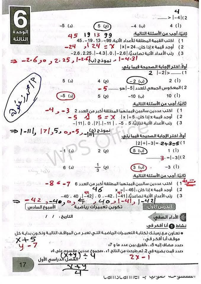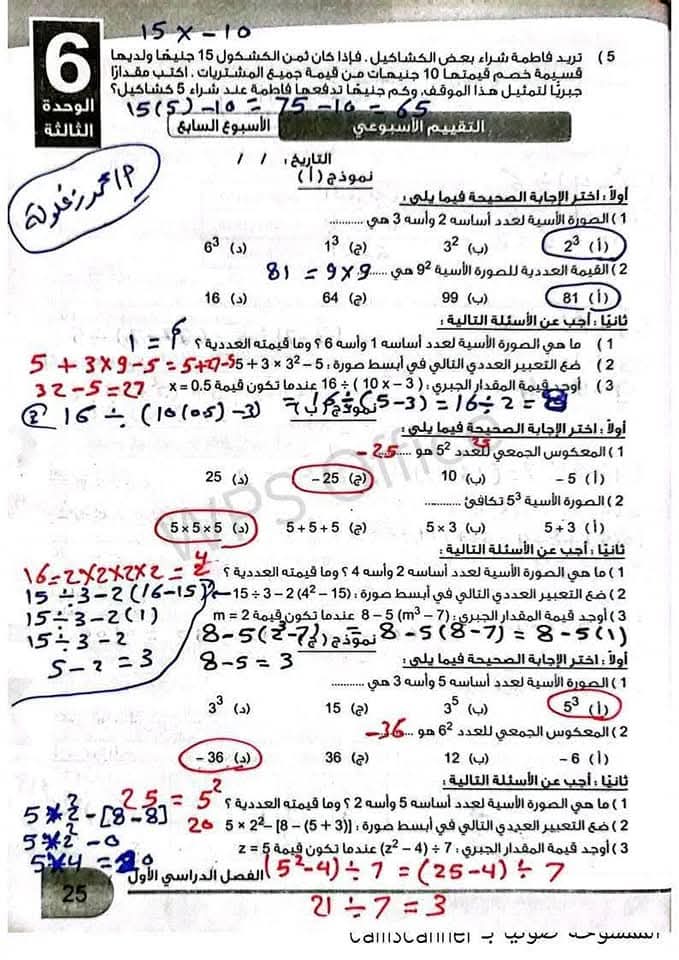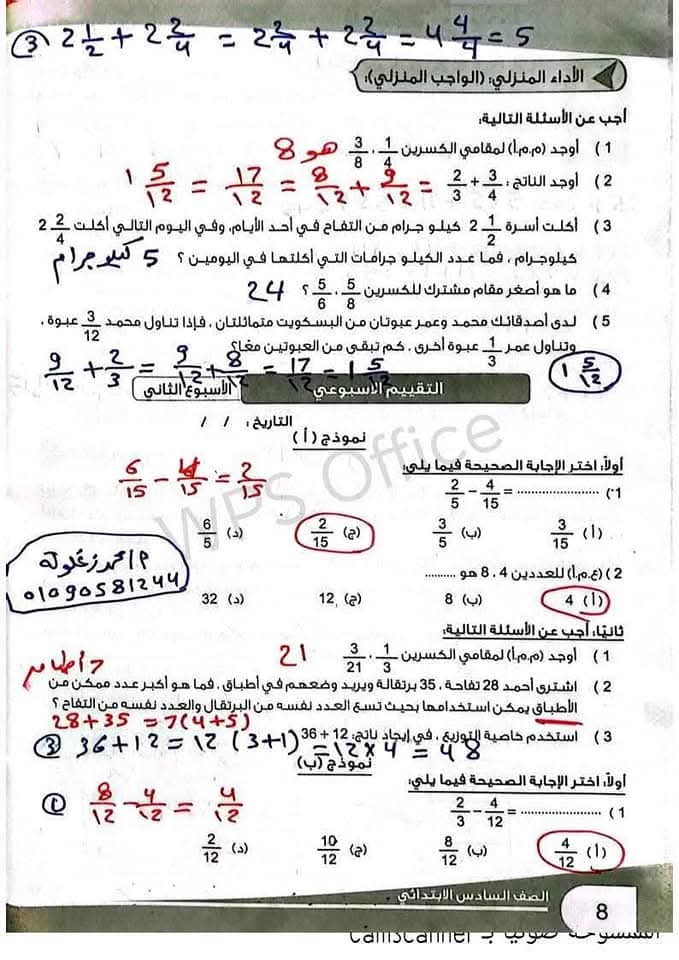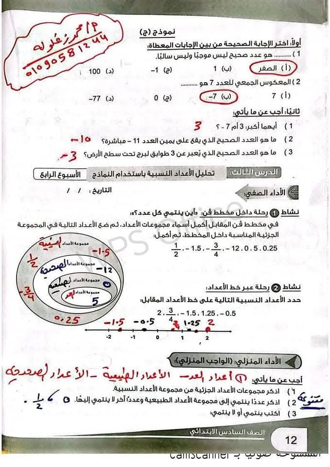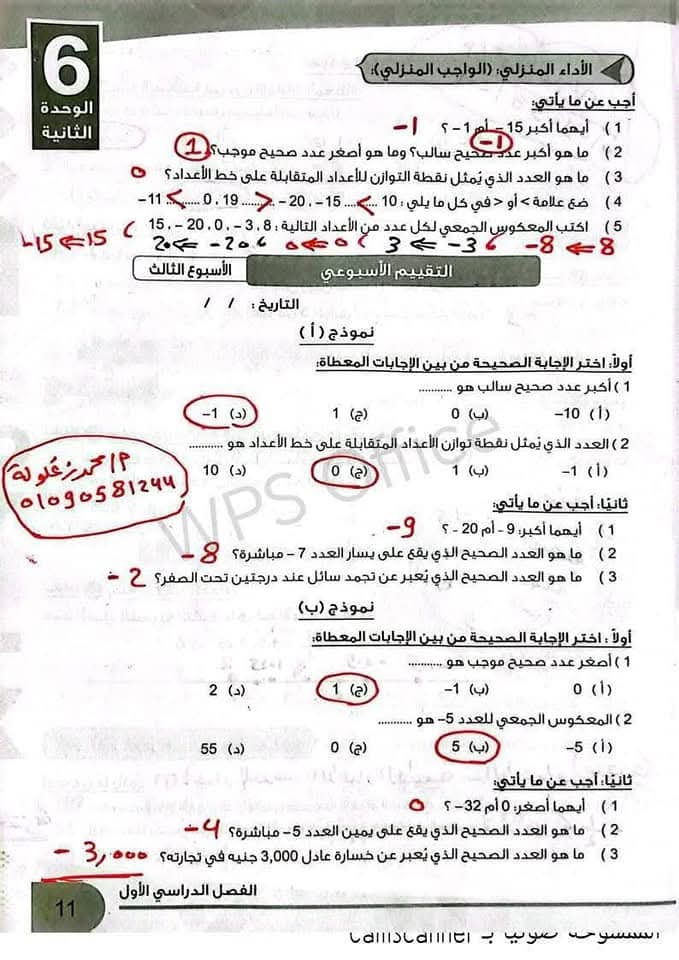 حل كتاب التقييمات للصف السادس الابتدائي رياضيات