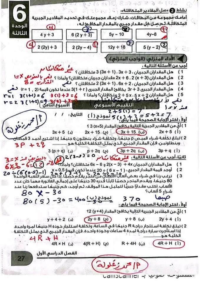 بالتزامن مع اقتراب بدء امتحانات الفصل الدراسي الأول للعام الدراسي 2025-2026، يتساءل الكثيرون من الطلاب والطالبات عن حل كتاب التقييمات للصف السادس الابتدائي رياضيات.