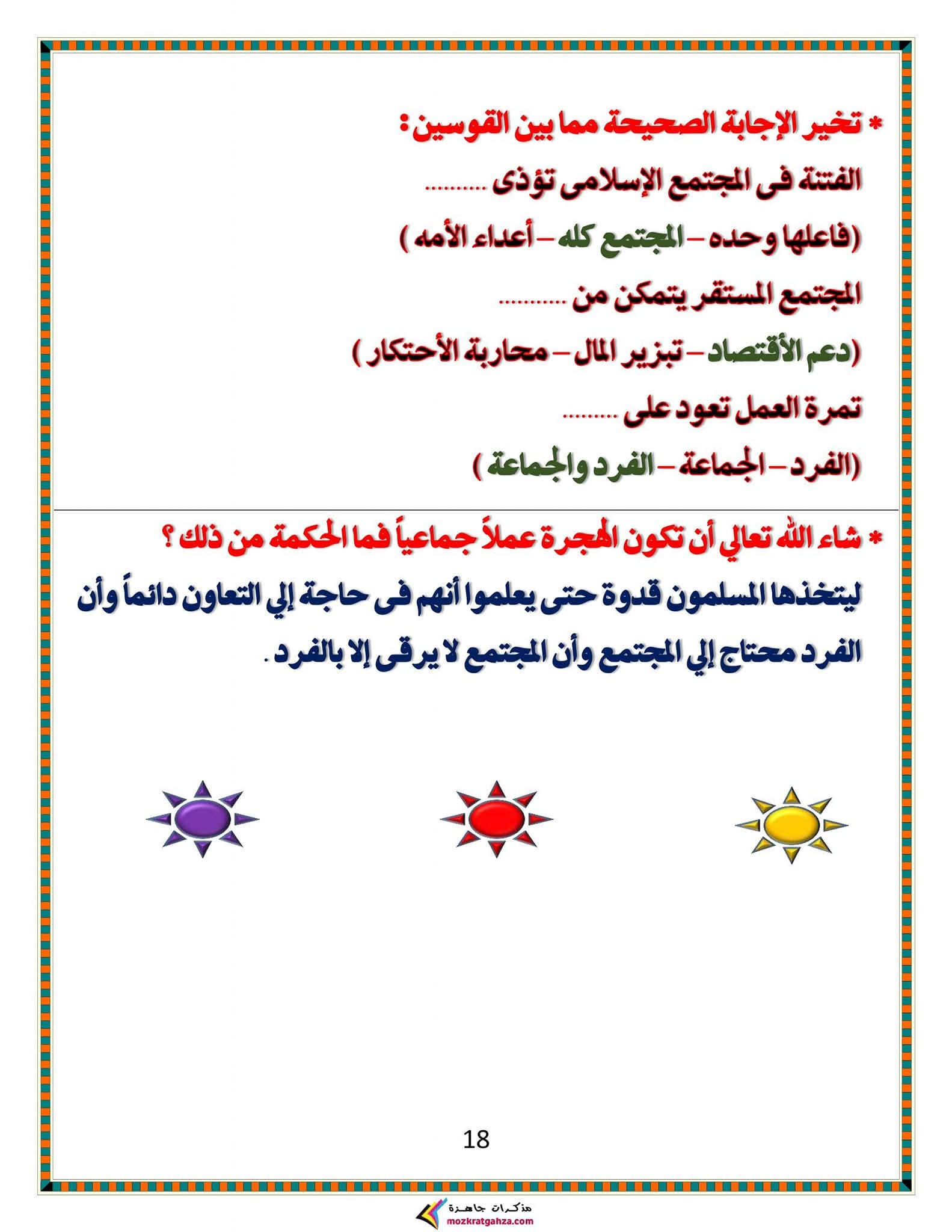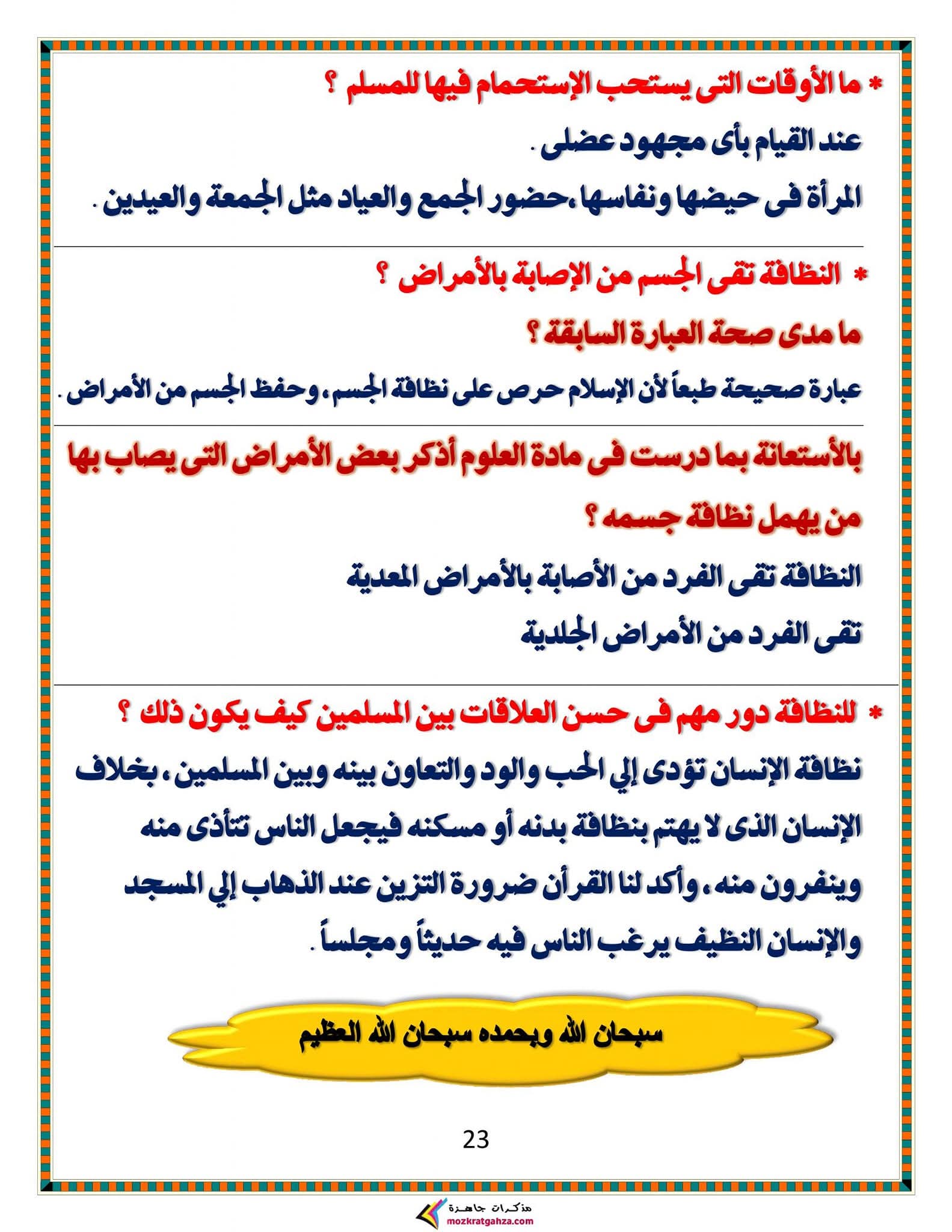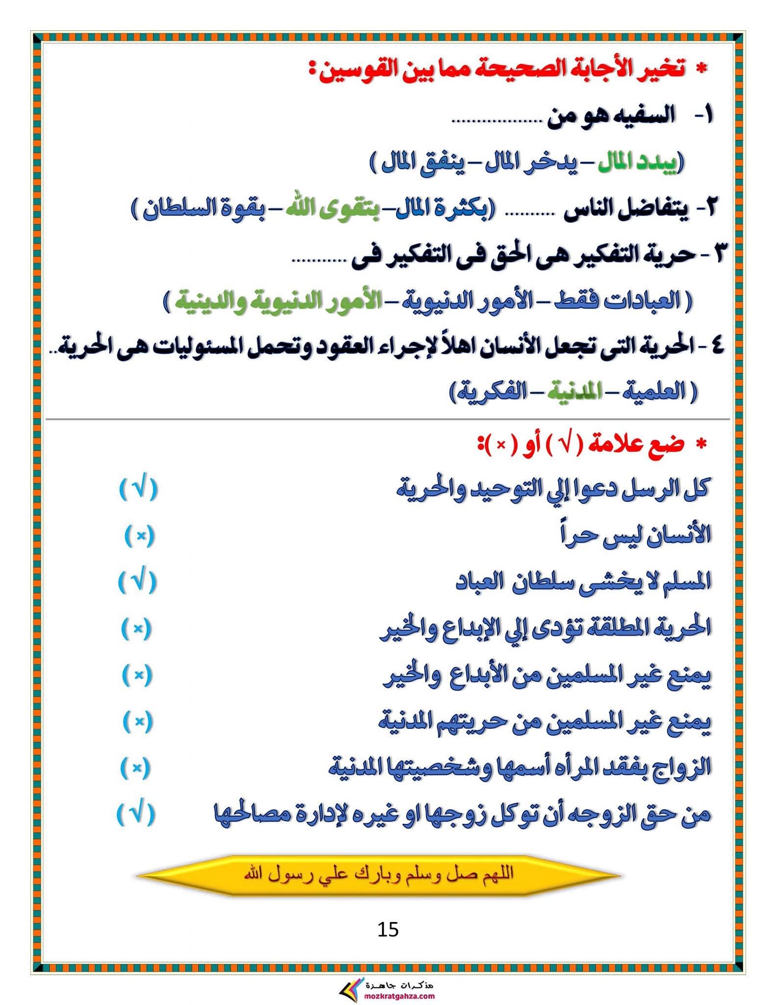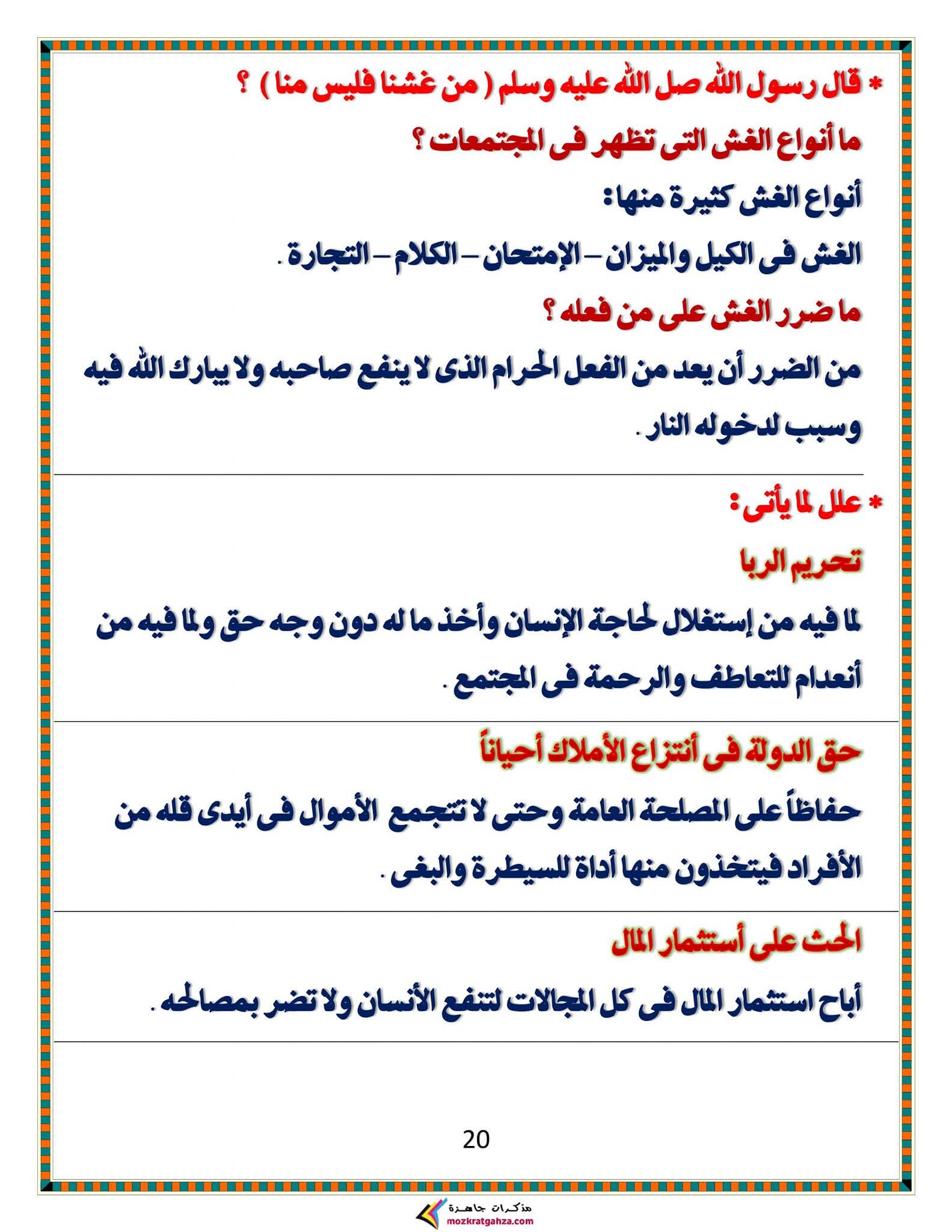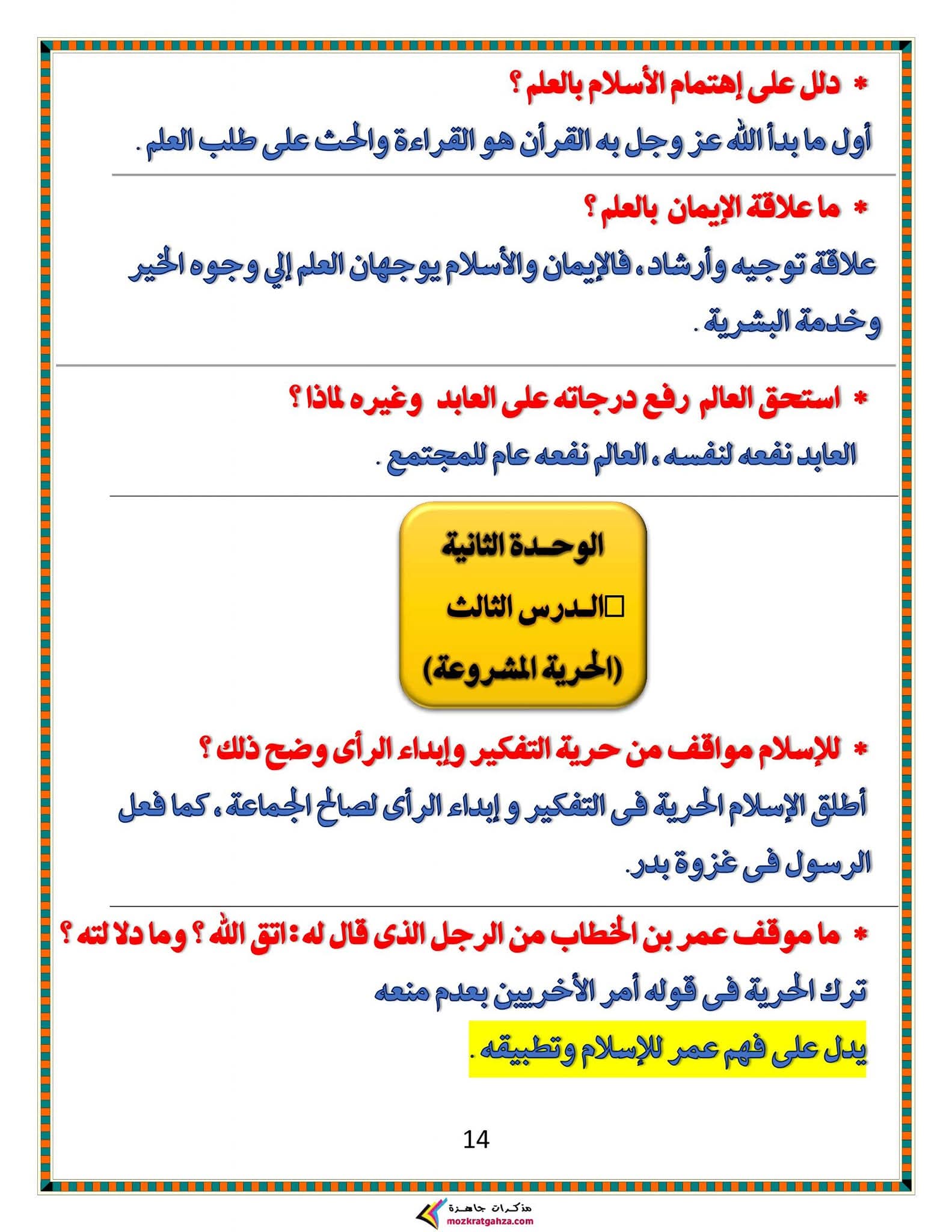 ويتمكن طلاب الشهادة الإعدادية مراجعة مادة الدين الإسلامي من خلال المراجعة التالية: