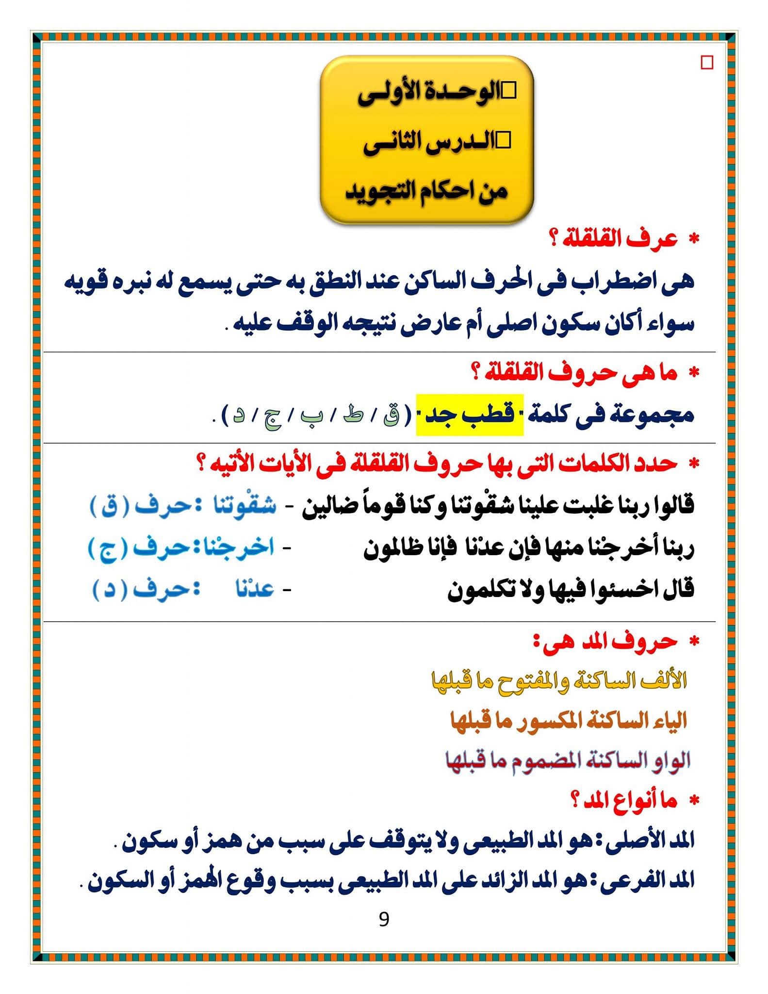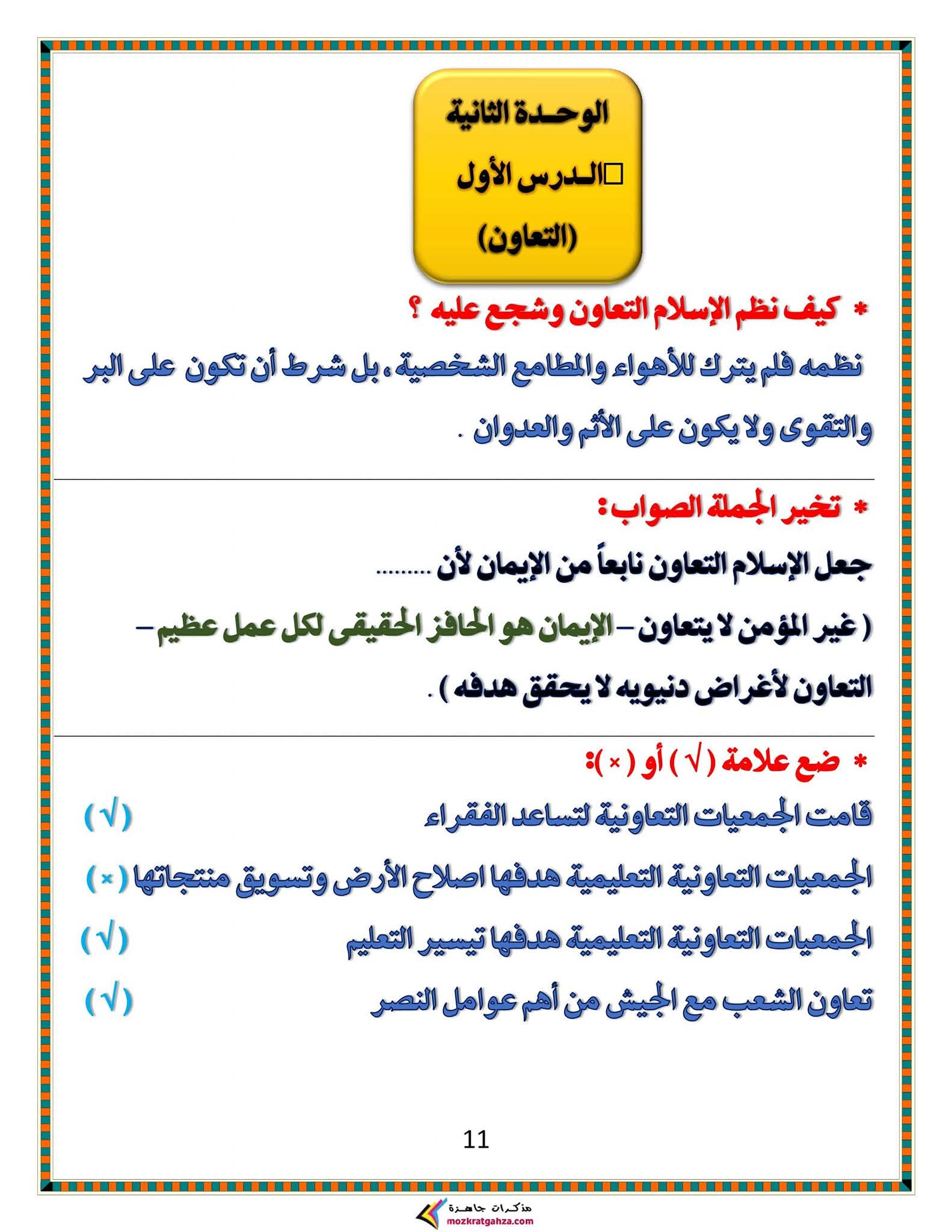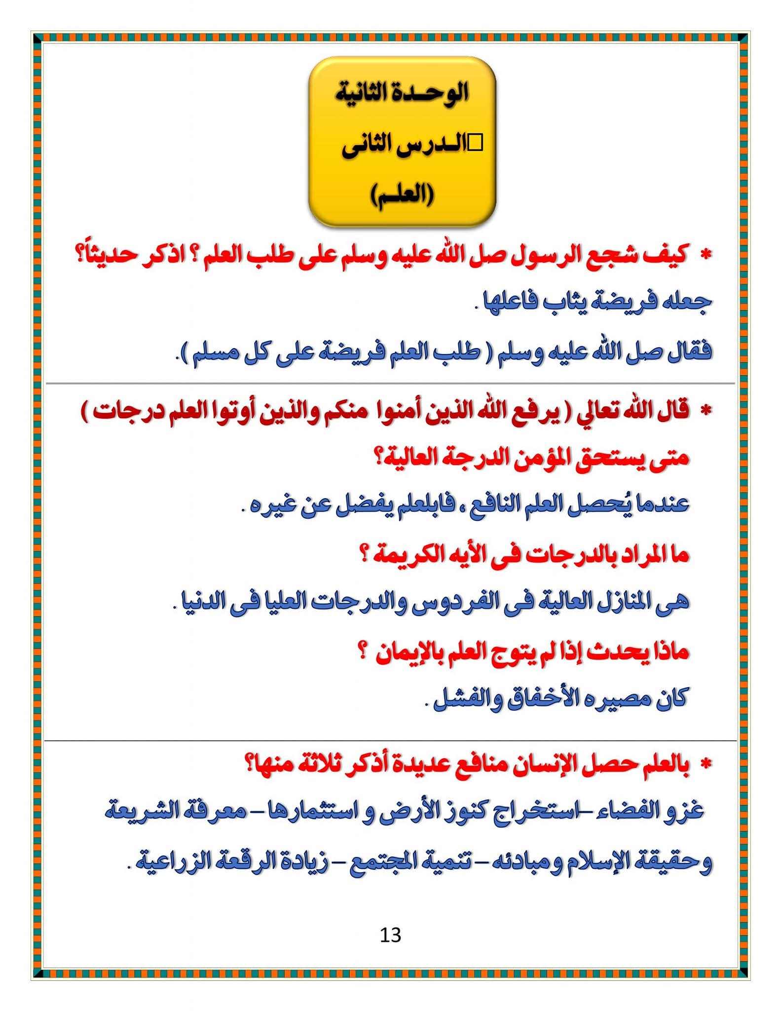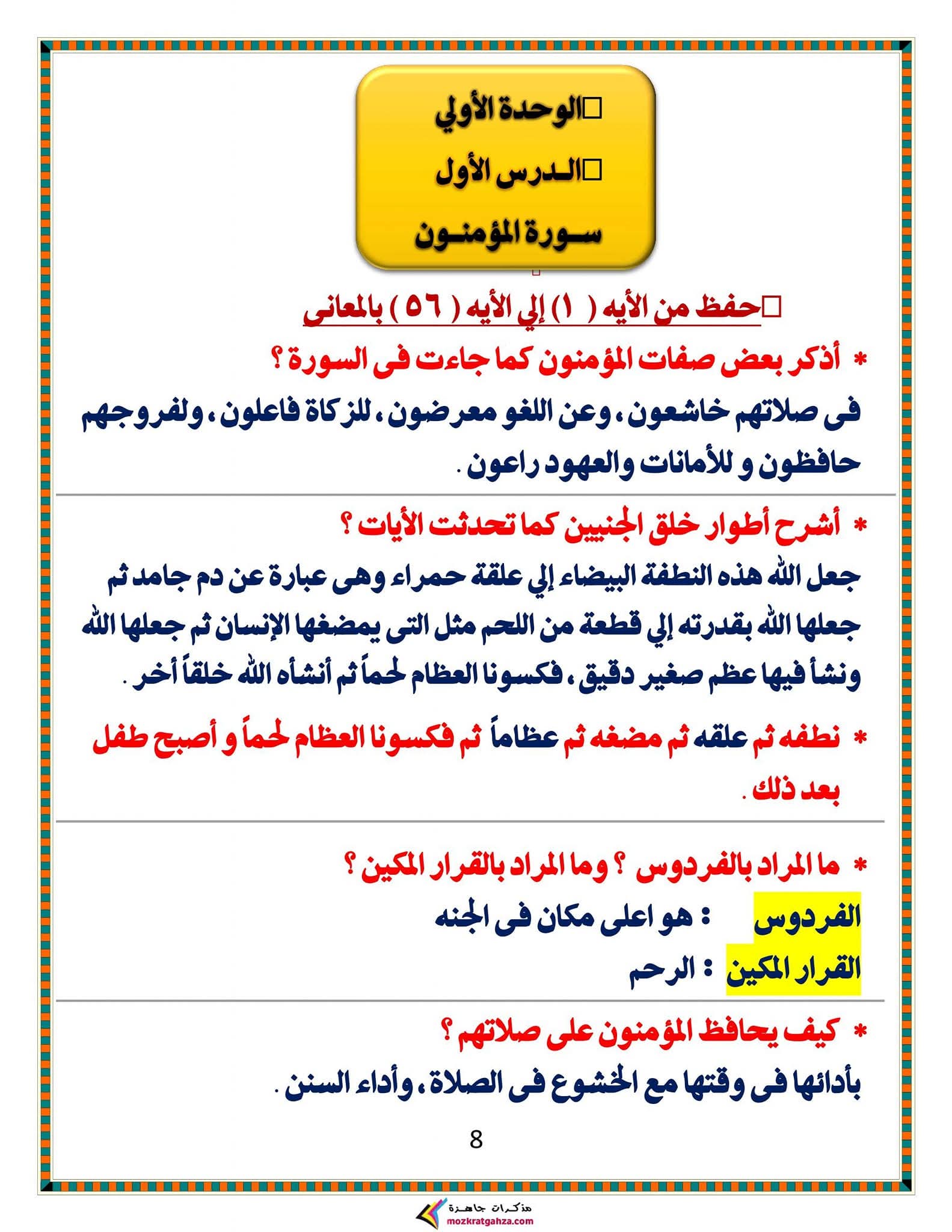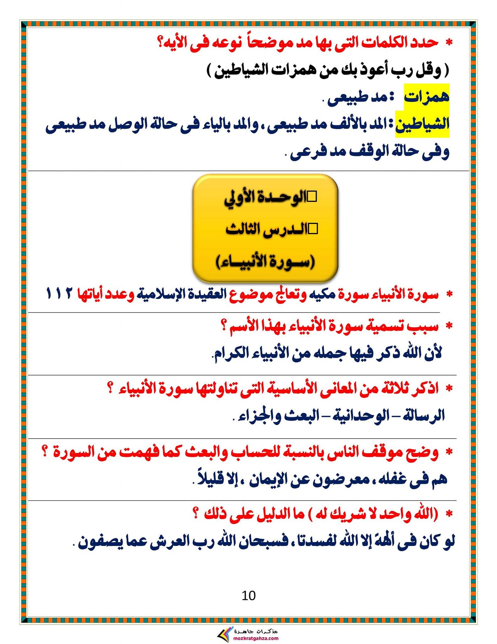 ويتمكن طلاب الشهادة الإعدادية مراجعة مادة الدين الإسلامي من خلال المراجعة التالية: