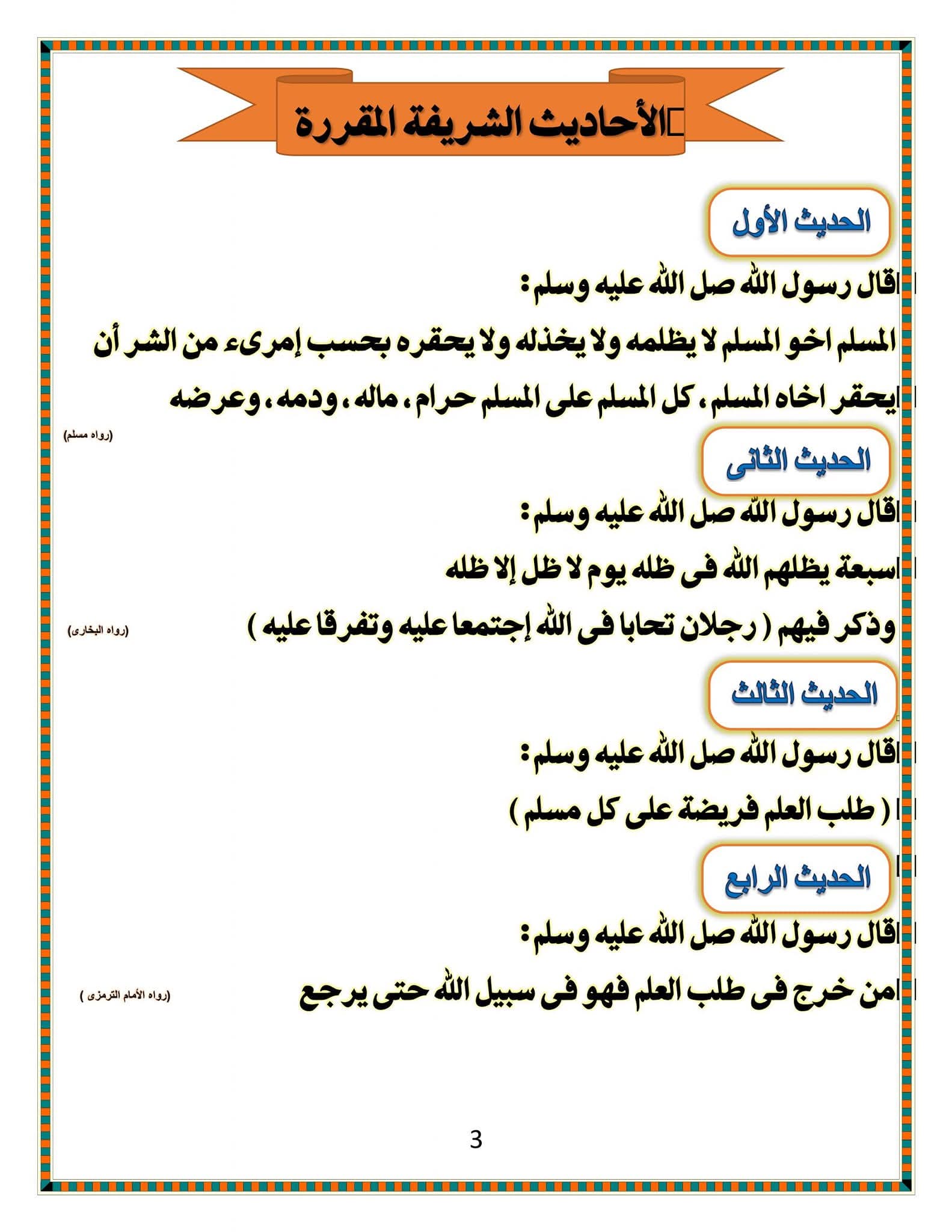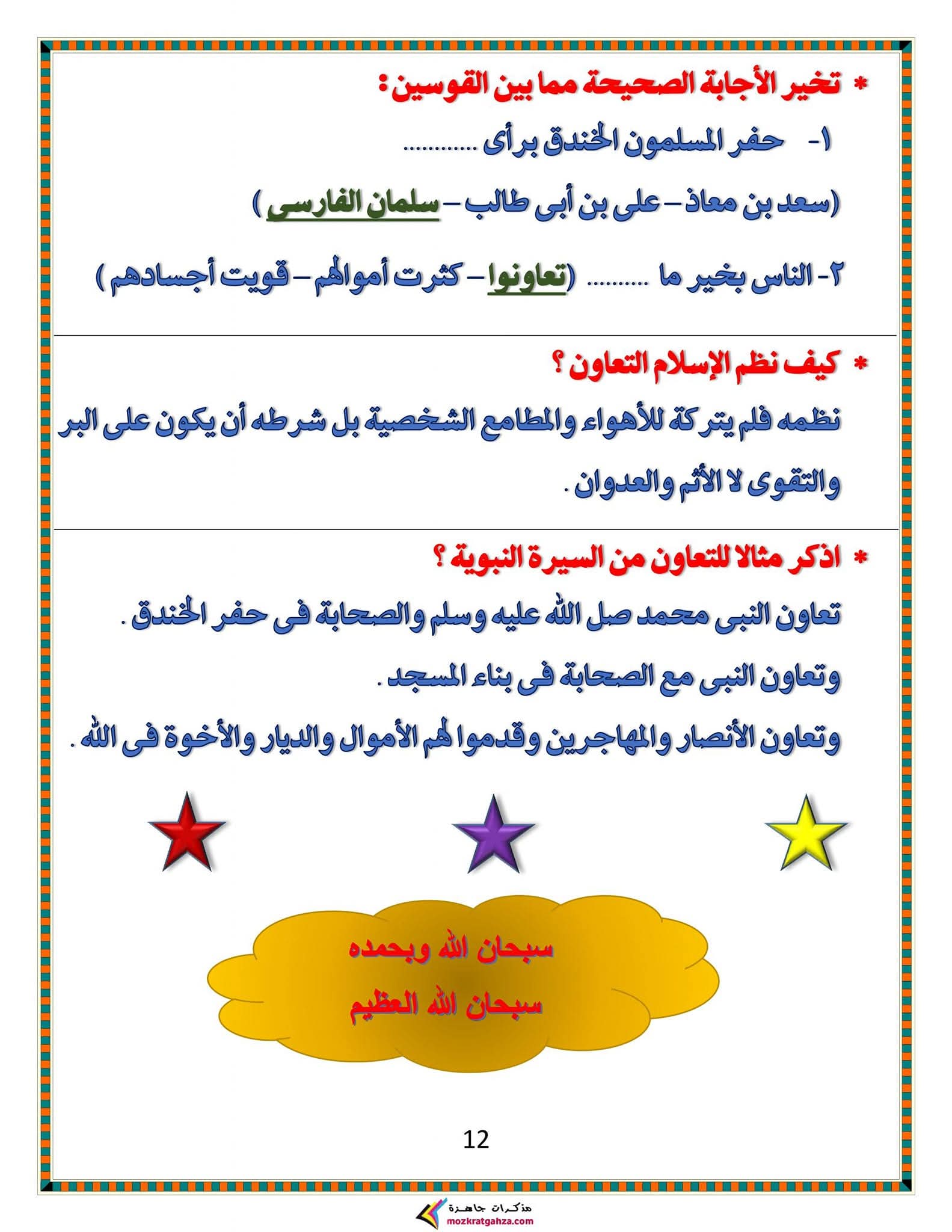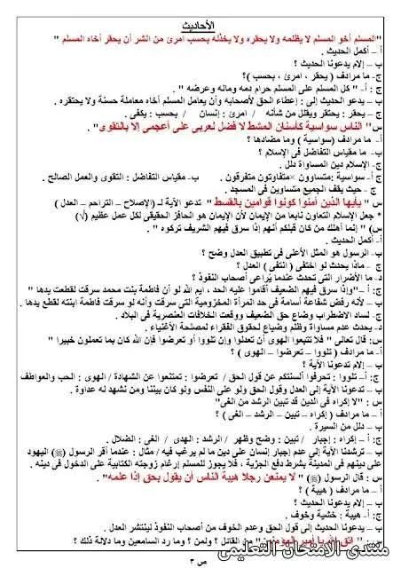 ملزمة دين للصف الثالث الإعدادي