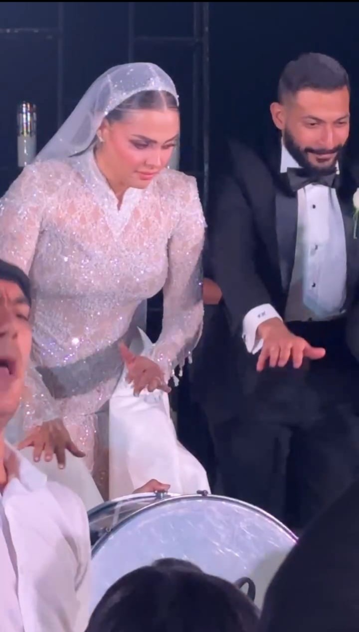وارتدت فريدة ابنة هنيدي فستانًا من اللون الأبيض مطعم بتطريزات أنيقة للغاية، مع طرحة الزفاف المميزة، بينما ارتدى عريسها بدلة كلاسيك من اللون الأسود.