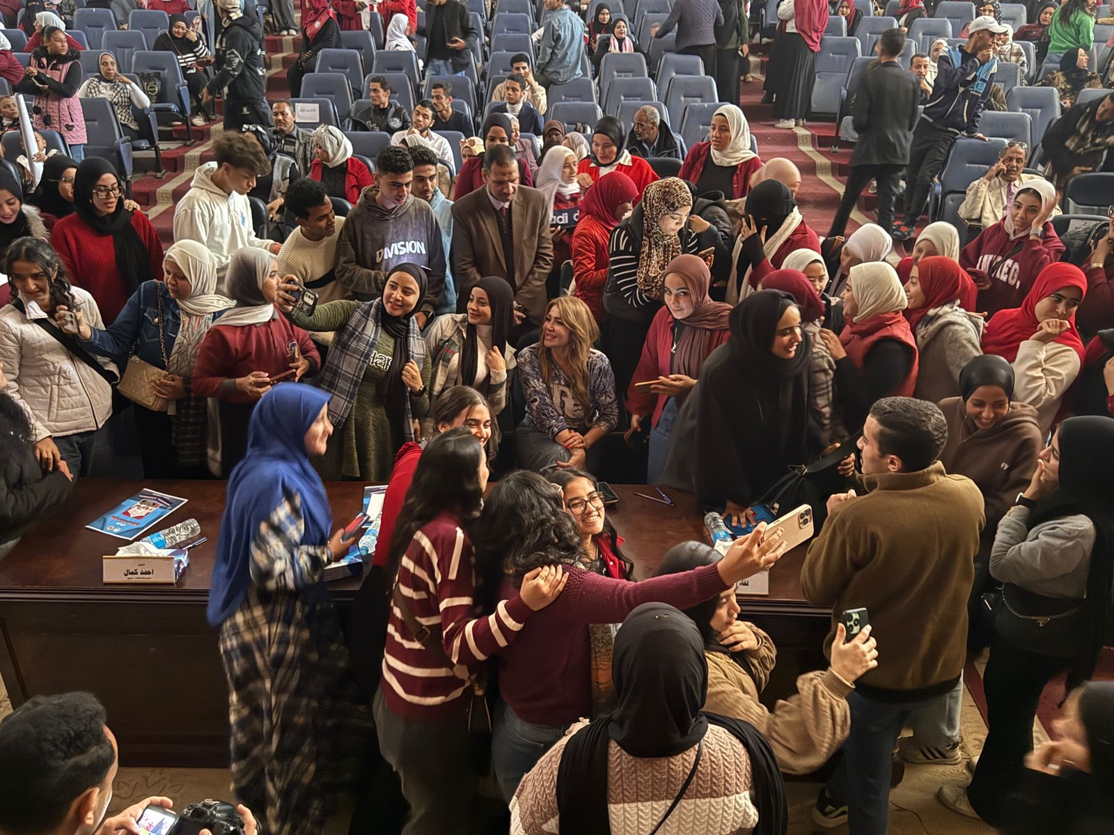 سامح حسين يستعيد الذكريات مع جامعة حلوان، وإقبال كبير من الطلاب