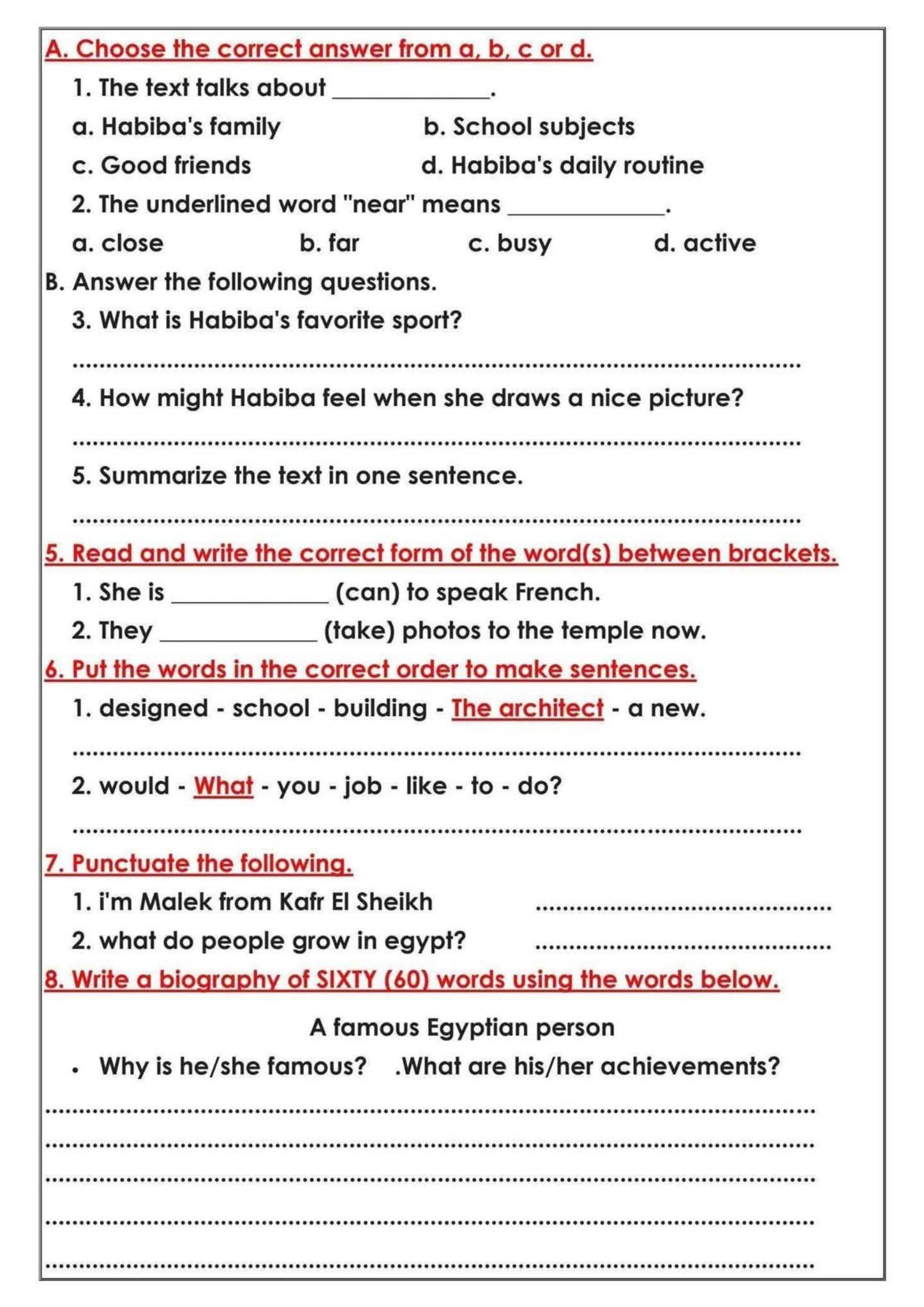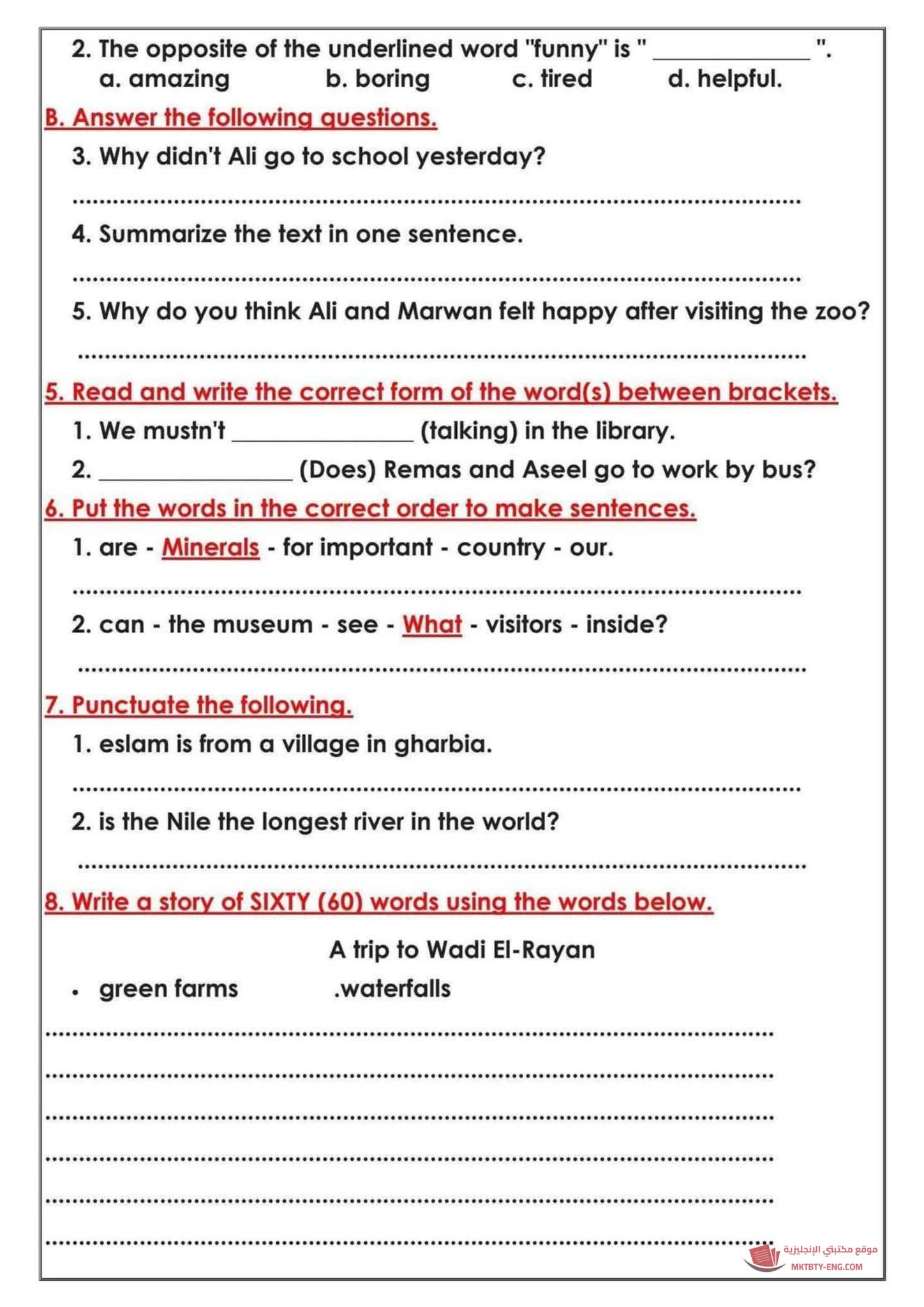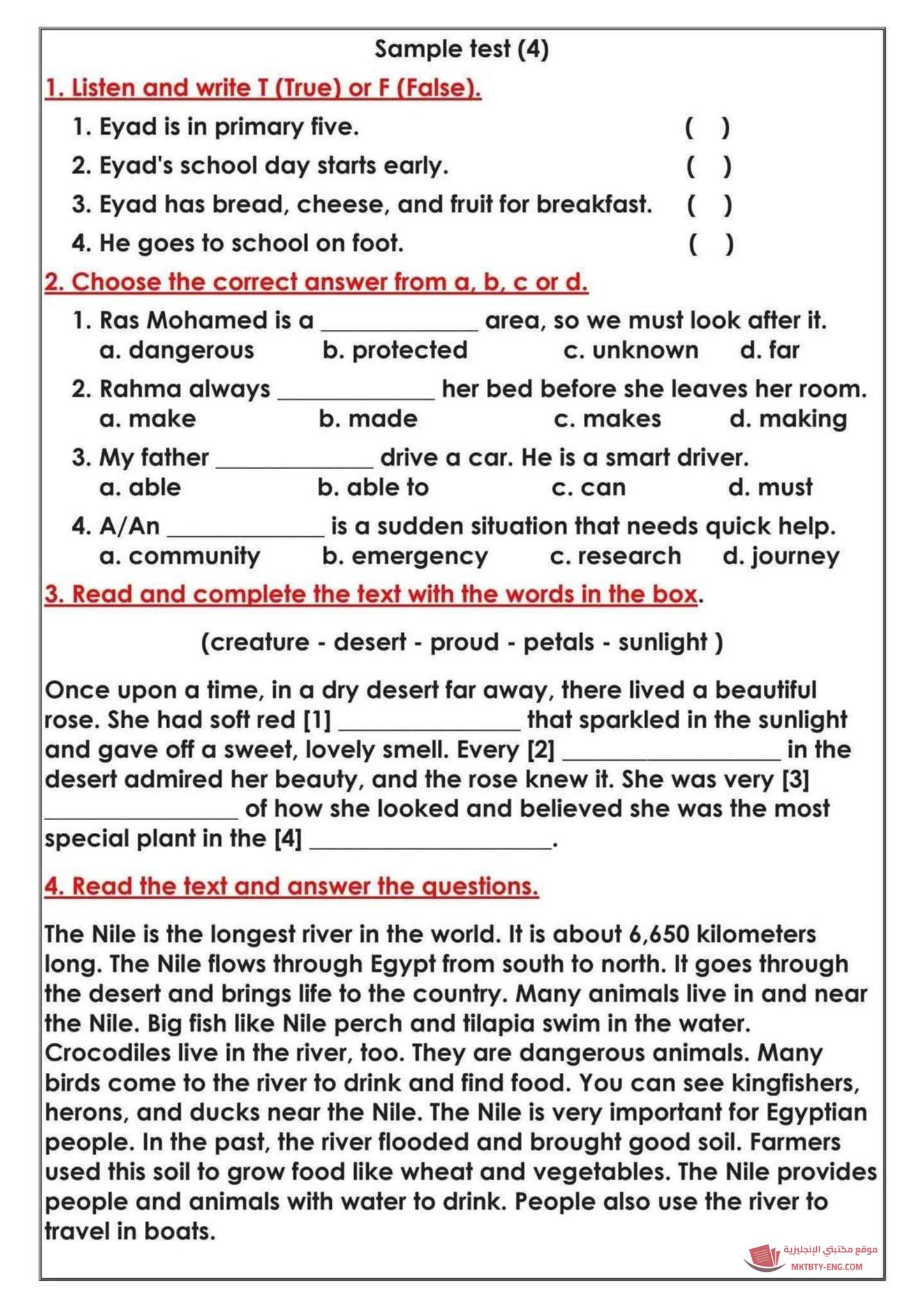 نماذج امتحان إنجليزي للصف السادس الابتدائي 2025-2026