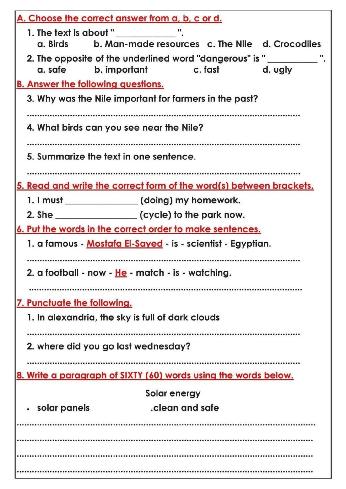 وتستعرض "تليجراف مصر" خلال الصور التالية نماذج لامتحانات مادة الإنجليزي للصف السادس الابتدائي 2025-2026 وتأتي كالتالي: