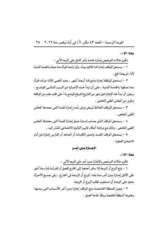 وفي وقت سابق، نشرت الجريدة الرسمية العدد المكرر رقم 1 في أول نوفمبر، لتؤكد أن إجازة العمرة تُعد إجازة اعتيادية تُحتسب من رصيد العام الحالي أو من الأرصدة المتراكمة للسنوات السابقة، ويجري احتسابها عادة لمدة 15 يومًا وفقًا للتأشيرة فقط، وهو عرف إداري دون سند قانوني.