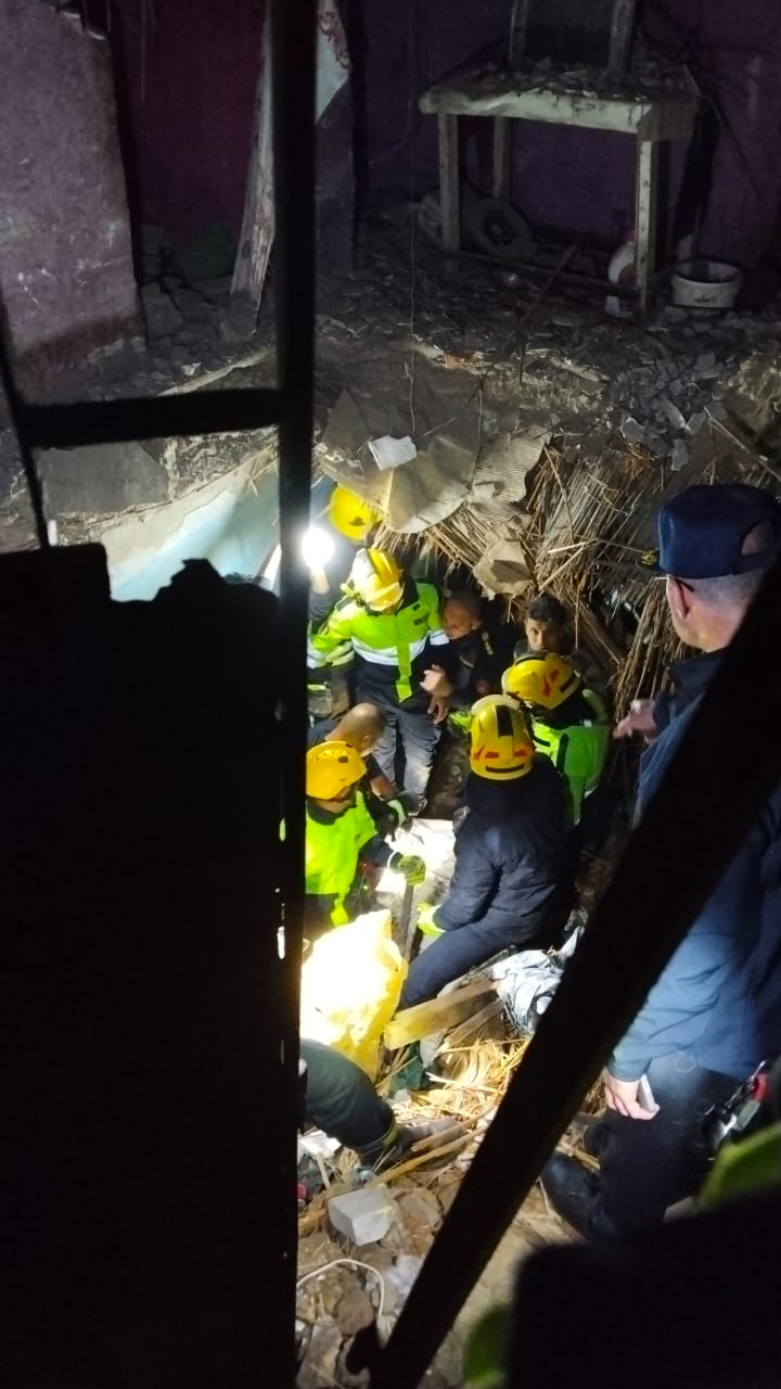 وتواصل قوات الحماية المدنية عملها، وسط محاولات لرفع الركام وتأمين موقع الحادث.