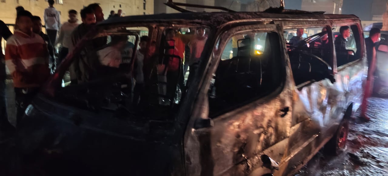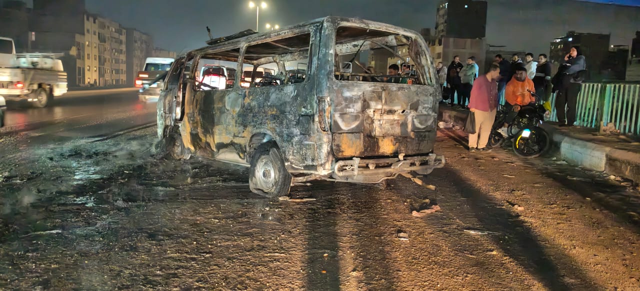 "ولعت لوحدها"، السيطرة على حريق ميكروباص بدائري البراجيل