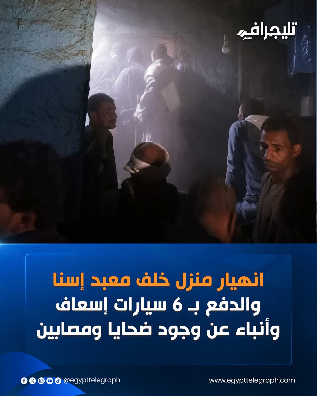 تلقت غرفة عمليات النجدة إخطارًا يفيد انهيار منزل سكني من طابق واحد، مُشيدًا من الطوب اللبن، يقع أمام مسجد السلام بقرية الدير، وهو مملوك لأحد المواطنين، ما أسفر عن سقوط عدد من الضحايا بين أنقاضه.