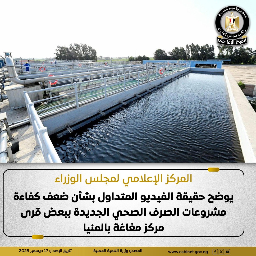 أوضح المركز الإعلامي لمجلس الوزراء، حقيقة الفيديو المتداول بشأن ضعف كفاءة مشروعات الصرف الصحي في عدد من قرى مركز مغاغة بمحافظة المنيا، حيث أكدت وزارة التنمية المحلية أن ما تم تداوله حول وجود مياه بشوارع قرية العباسية التابعة لمركز مغاغة لا علاقة لها بمشروعات الصرف الصحي بالقرية.