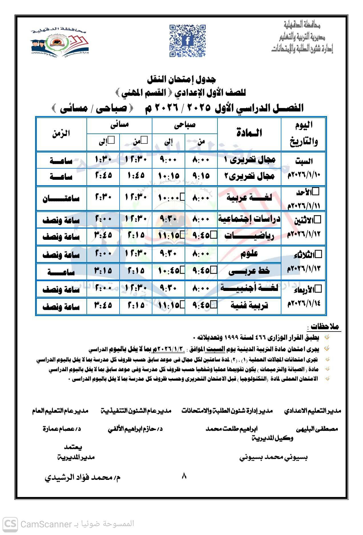 جدول امتحانات نصف العام للمرحلة الإعدادية بالدقهلية