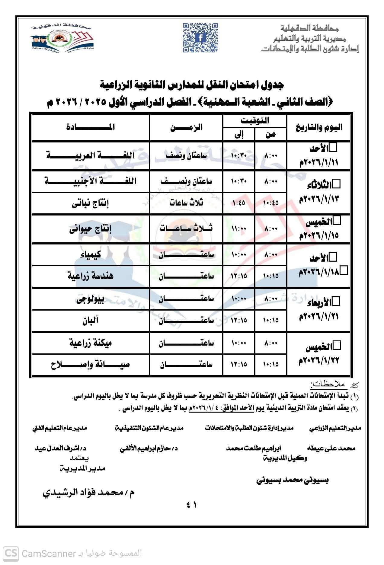 ويُمكن الاطلاع على جدول امتحانات الصف الثاني الثانوي بالمدارس الزراعية بمحافظة الدقهلية للعام الدراسي 2025-2026، وذلك عبر مجموعة الصور التالية: