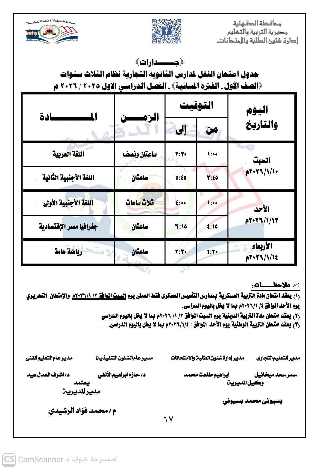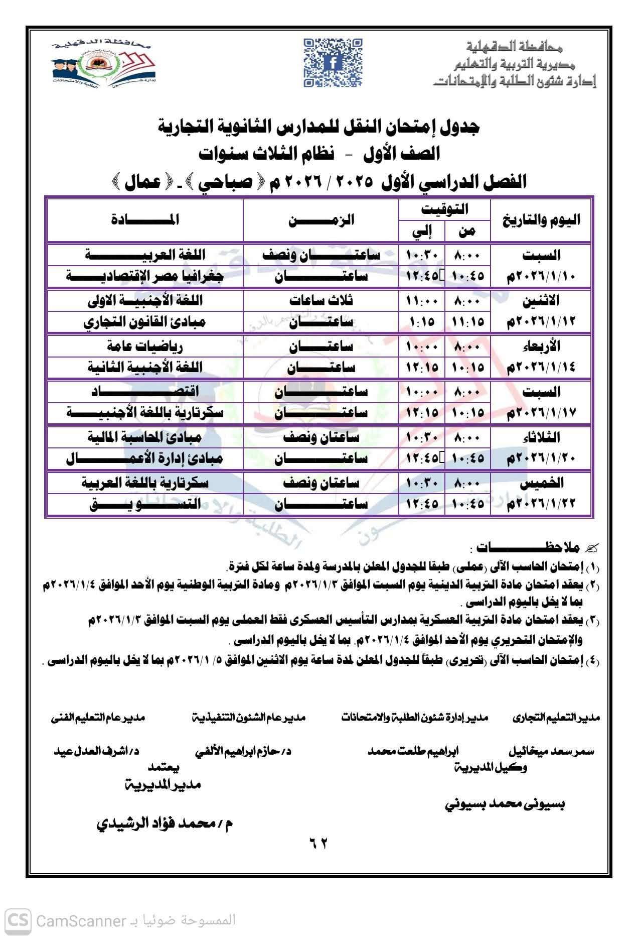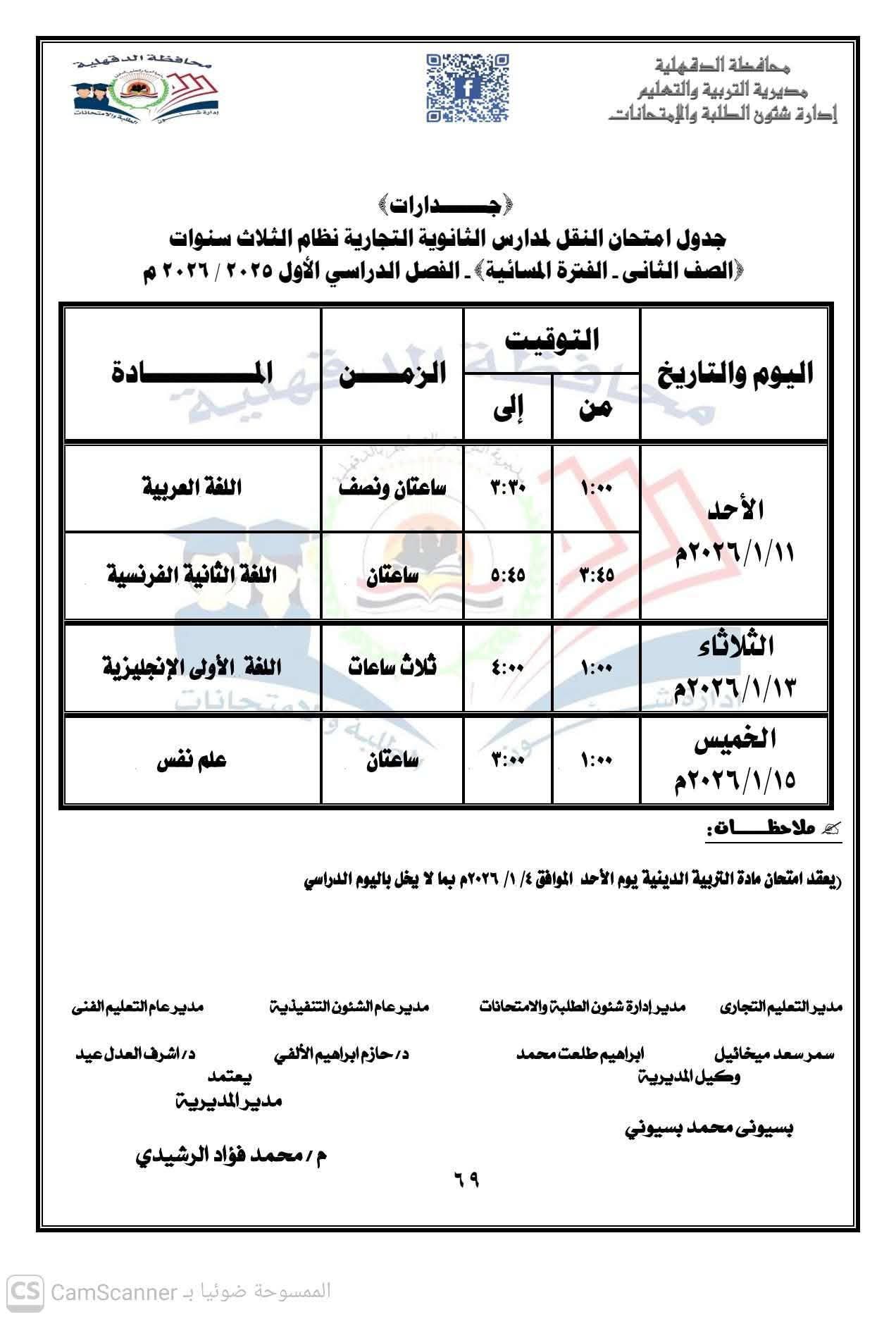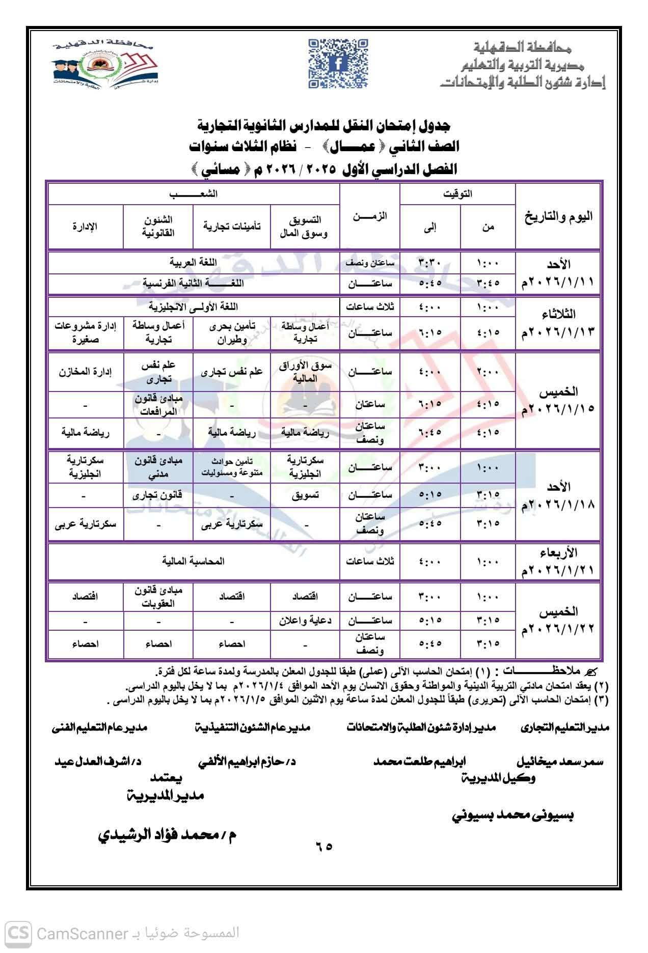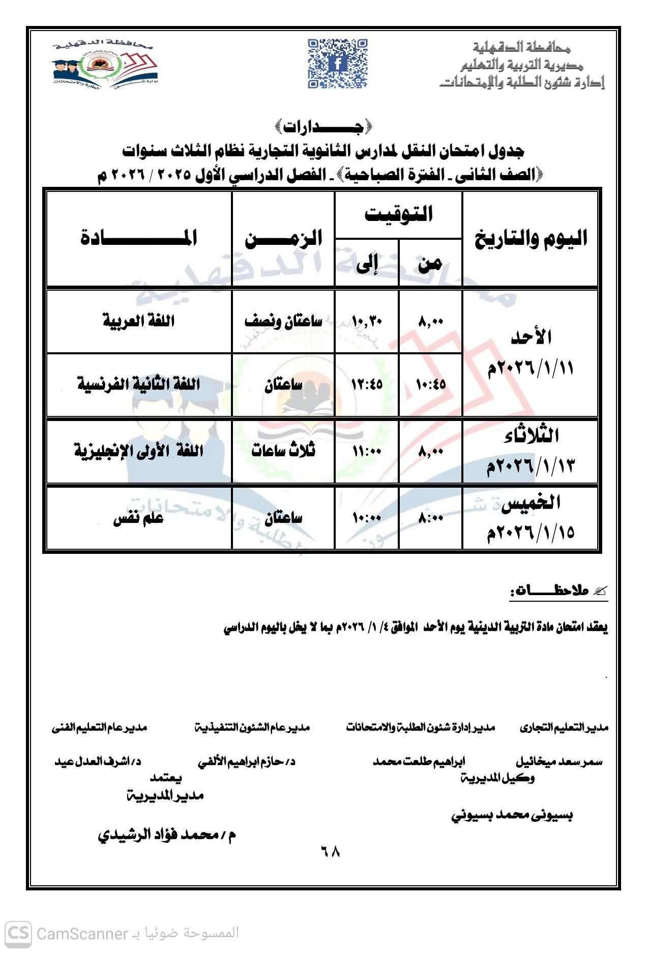 يستطيع الطلاب الاطلاع على جدول امتحانات الصف الثاني الثانوي التجاري بمحافظة الدقهلية للعام الدراسي 2025-2026 من خلال مجموعة الصور التالية: