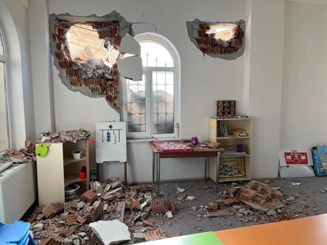 وأوضح أن ثقوبًا قد تشكلت في جدار قاعة دروس القرآن الكريم حيث كان يتلقى الـ31 طالبًا تعليمهم، وأن ثلاثة من الأعمدة الداعمة لمحراب المسجد تضررت، مؤكدًا لا وجود للخسائر البشرية.