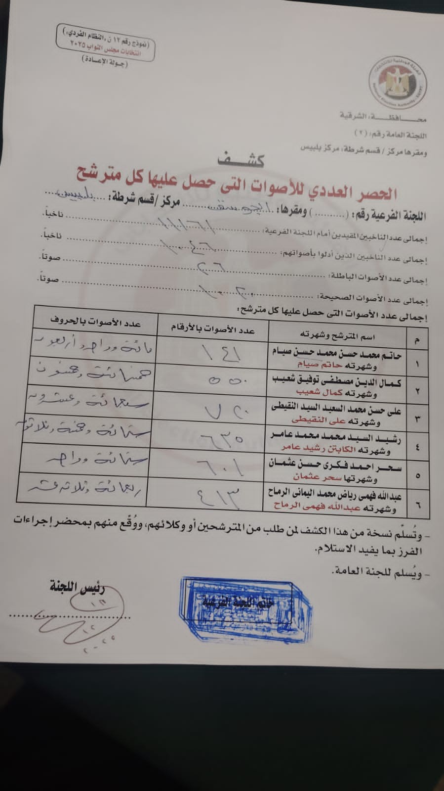 تواصلت أزمة انتخابية في لجنة 71 دائرة بلبيس بمحافظة الشرقية، بعد ظهور محاضر فرز متضاربة في انتخابات جولة الإعادة للمرحلة الثانية، وأثارت جدلًا واسعًا حول مصداقية النتائج، وفقًا لما أعلنه عبدالمنعم إمام، رئيس حزب العدل، عبر صفحته على فيسبوك.