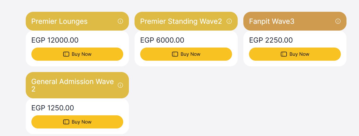وجاءت أسعار التذاكر وفقًا للفئات التالية: