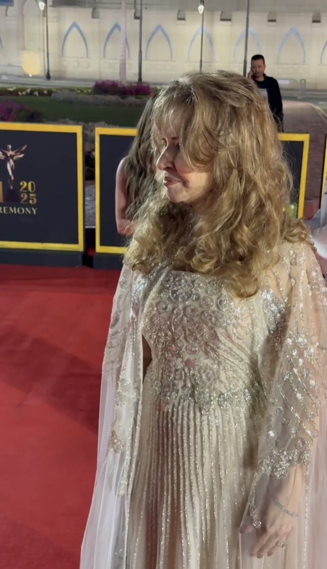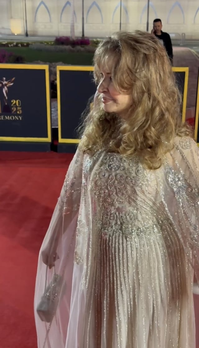وظهرت الفنانة نيللي بإطلالة أنيقة للغاية، حيث ارتدت فستانًا من اللون البيج وبه تطريزات من الخرز اللامع، وقالت عندما حاول بعض الصحفيين التقاط بعض الصور التذكارية لها: “إضاءة إيه؟.. أنا مش محتاجة”، ليرد عليها أحد المراسلين “هي منورة لوحدها”.