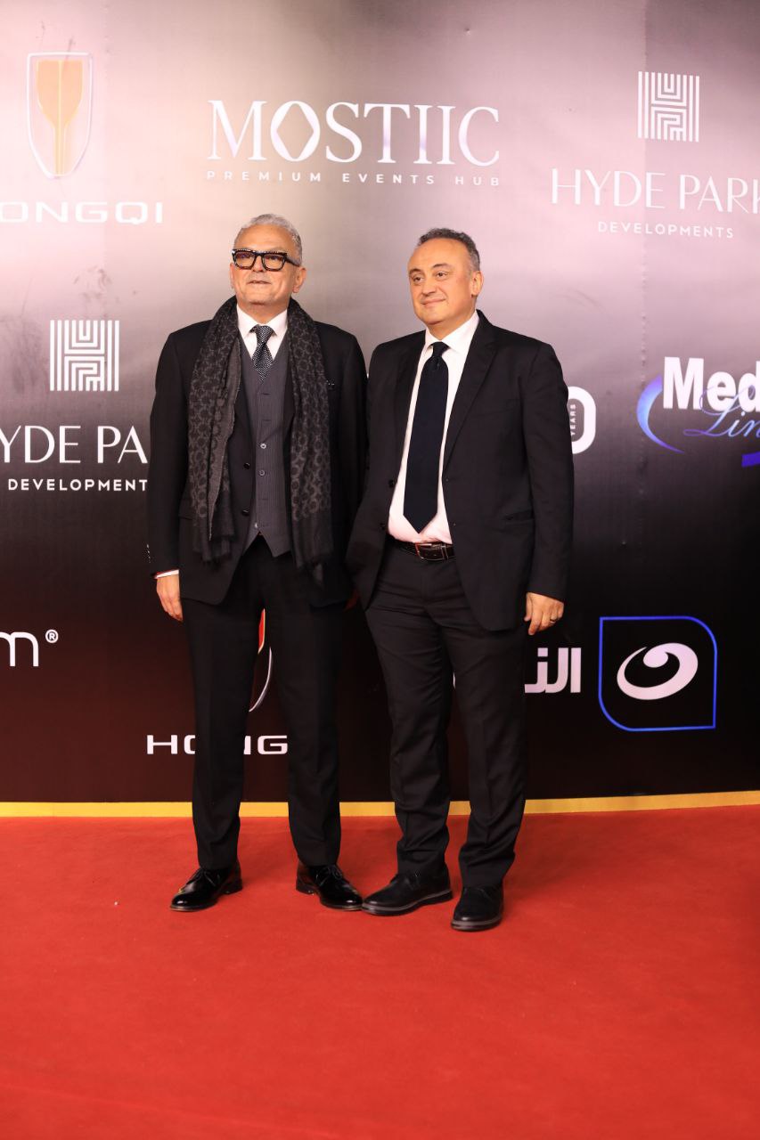 وخطف علاء الكحكي الأنظار على السجادة الحمراء للمهرجان هو وأسرته وشقيقه، استعدادًا لتسليم جوائز “الأفضل” لعدد من الفنانين.