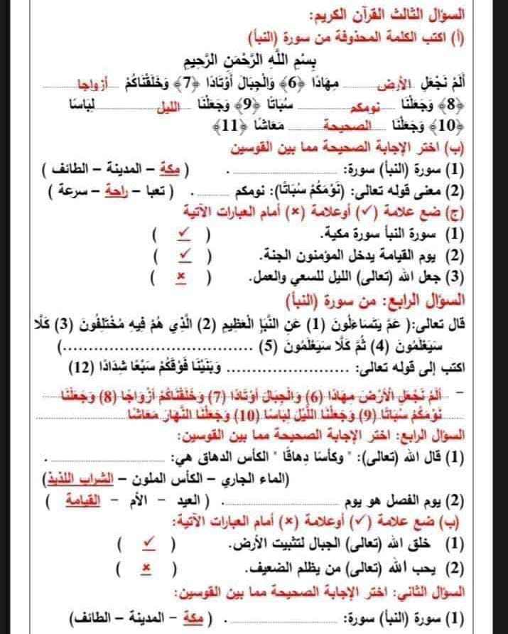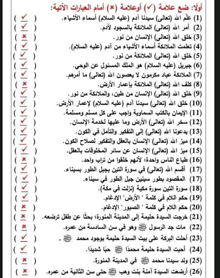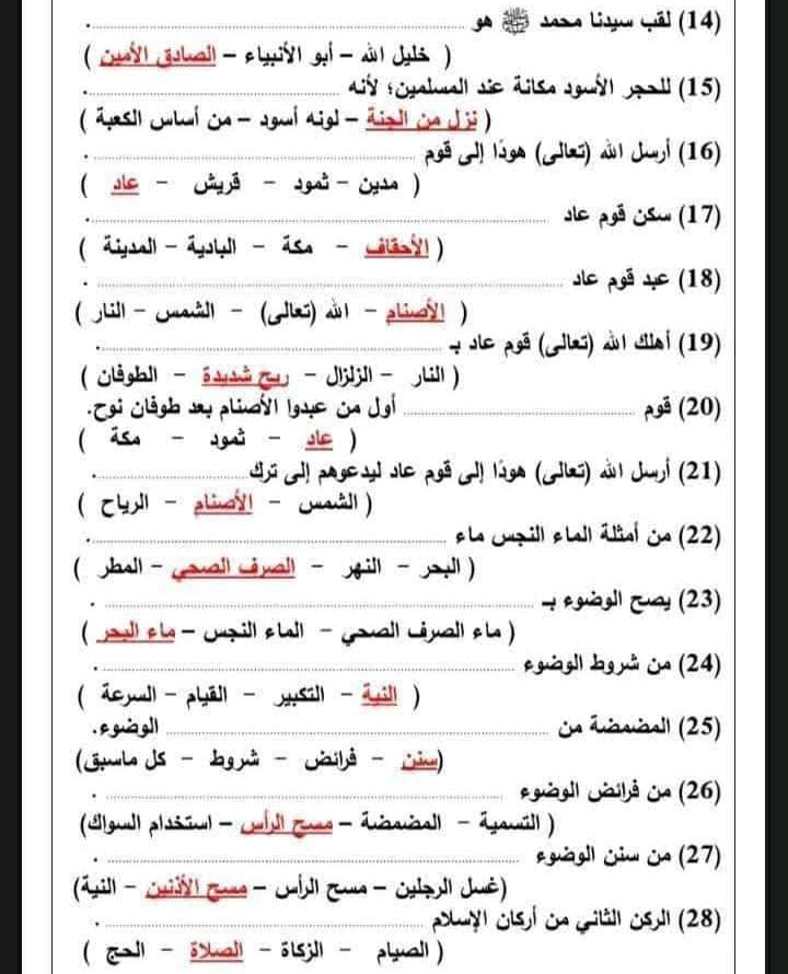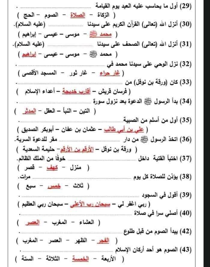 مراجعة دين للصف الرابع الابتدائي الترم الأول 2025-2026