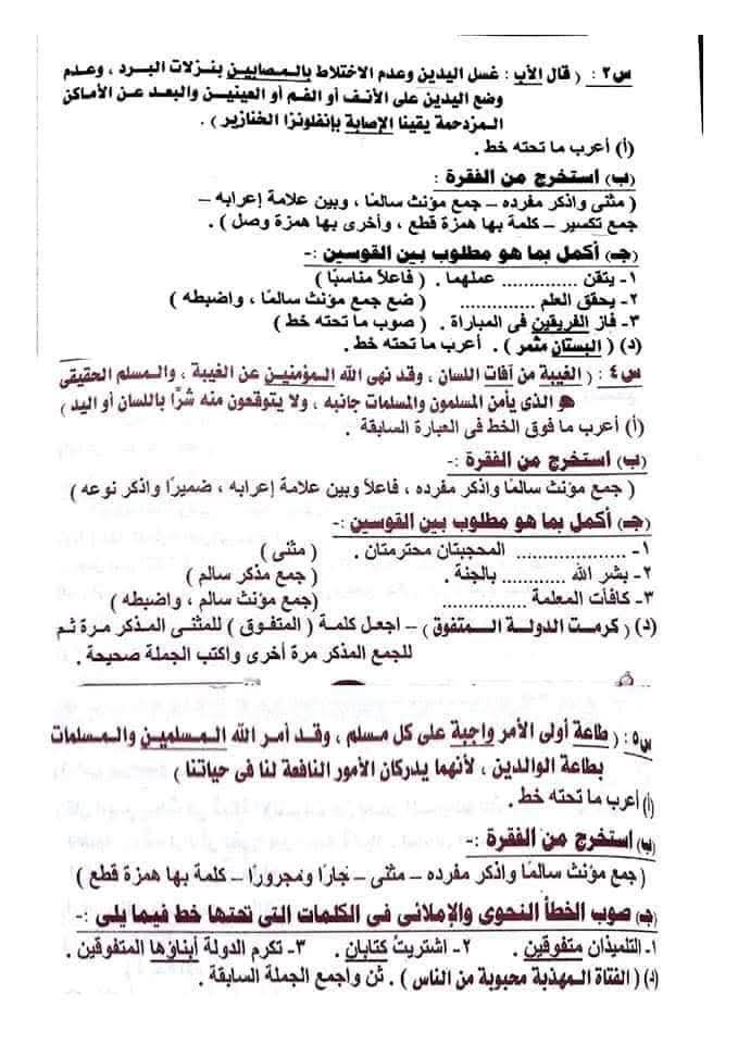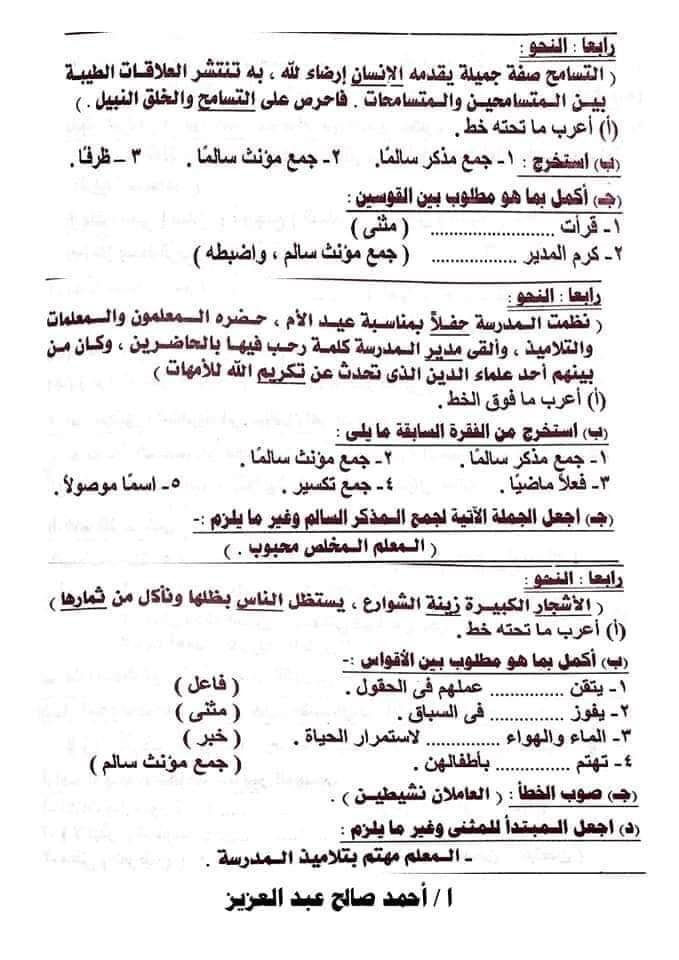 نماذج امتحانات لغة عربية للصف الخامس الابتدائي ترم أول 2025-2026