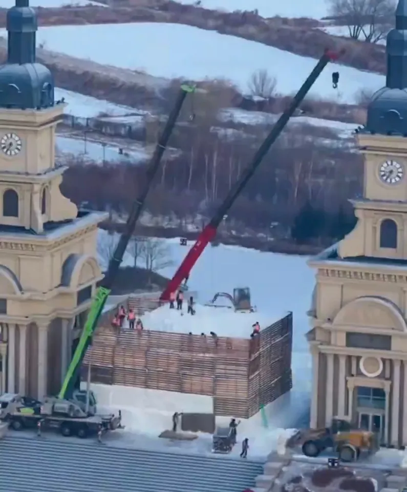 وبحسب ما نشره موقع The Sun، شارك في تنفيذ المشروع فريق يضم 64 نحاتًا، إلى جانب أكثر من 100 عامل، مستخدمين نحو 3500 متر مكعب من الثلج المُصنع آليًا، في عملية تطلبت دقة فنية وجهدًا بدنيًا كبيرًا.