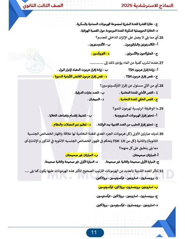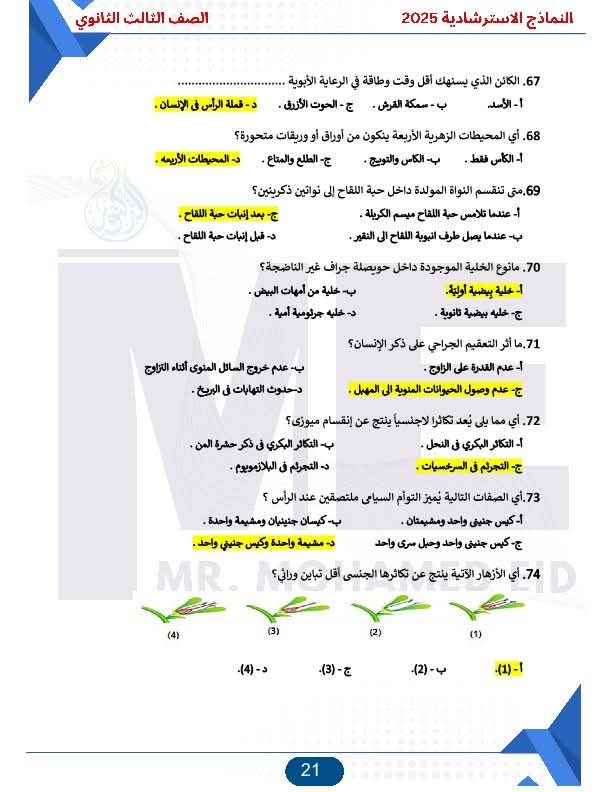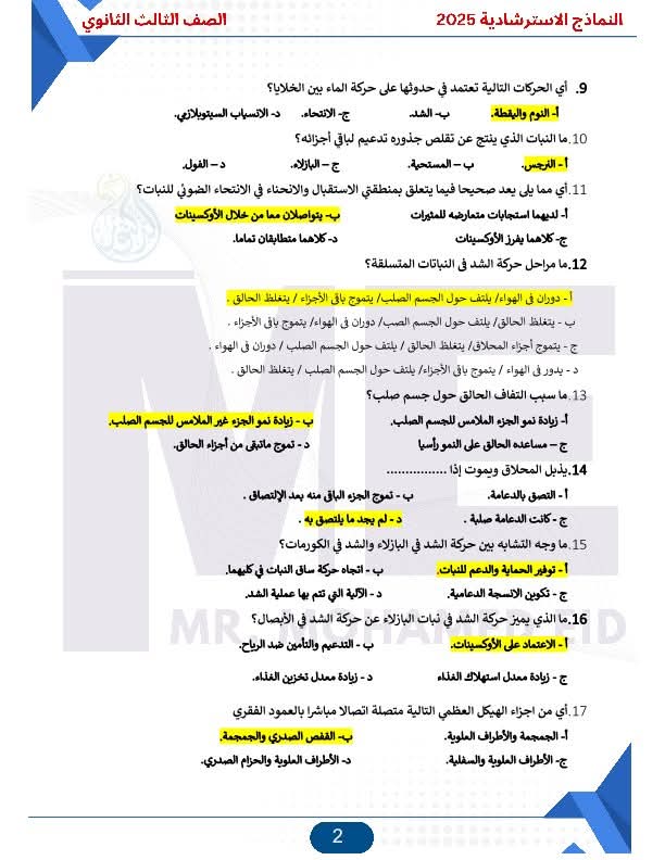 ويستطيع طلاب الثانوية العامة الاستفادة من نماذج امتحانات الأحياس من خلال حل الأسئلة في جميع نماذج الامتحانات كالتالي: