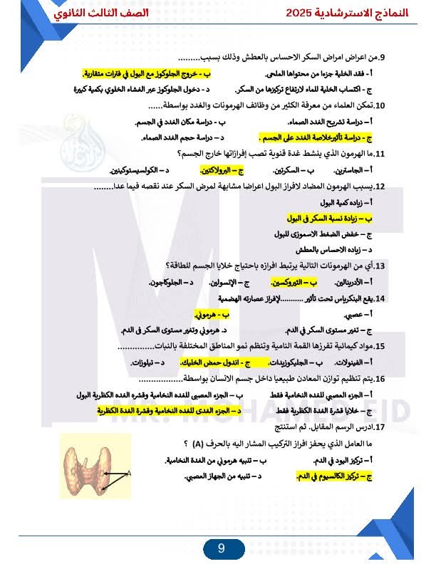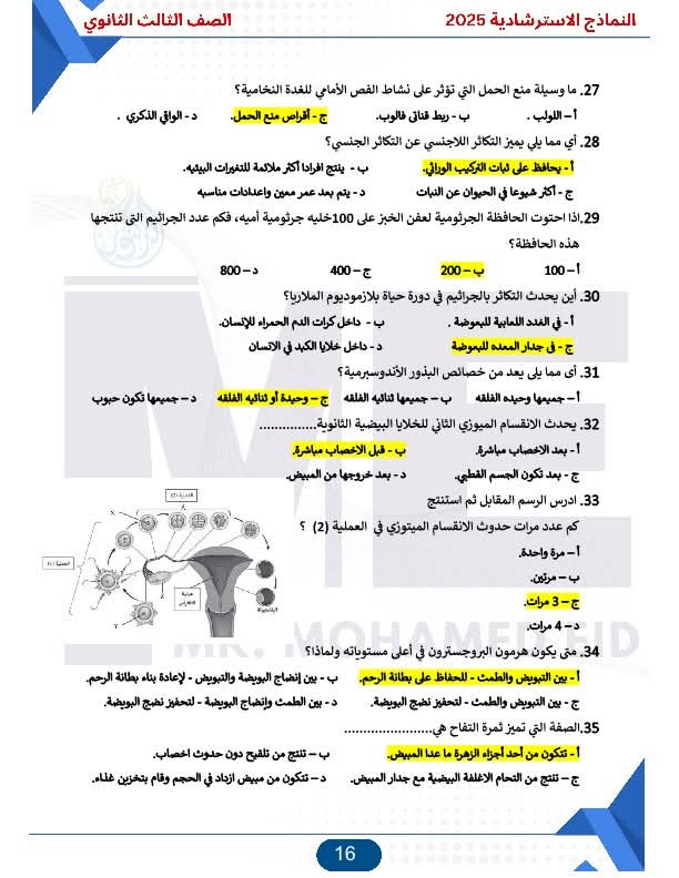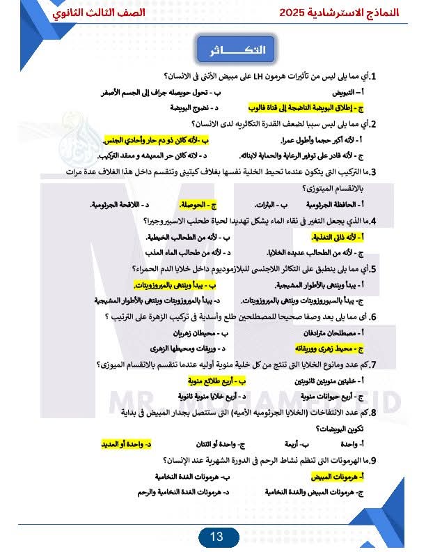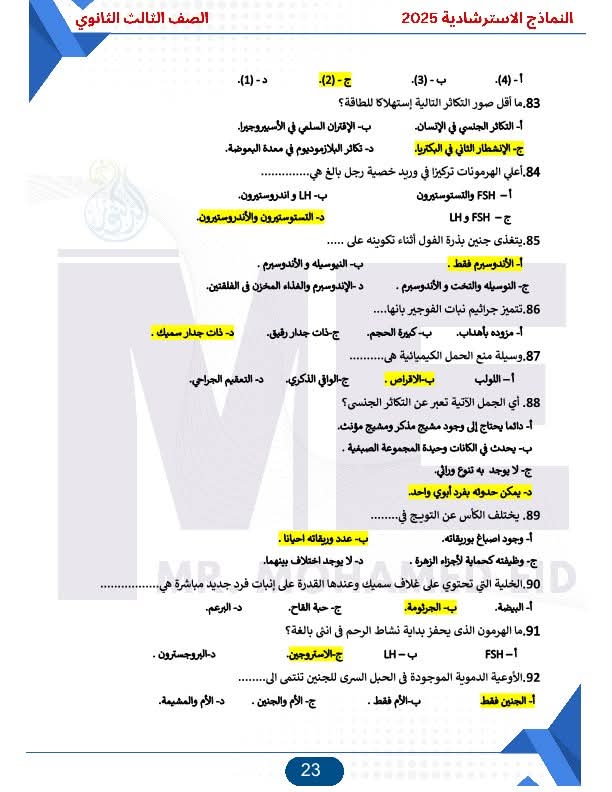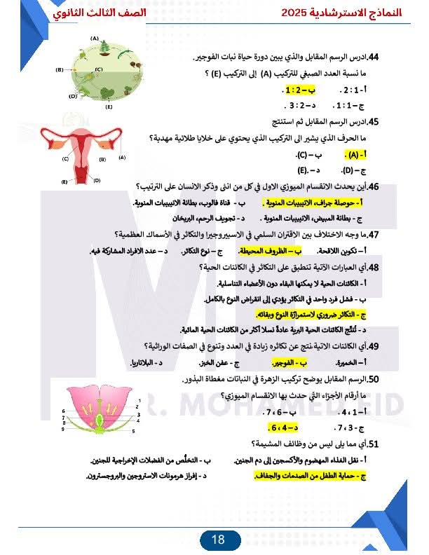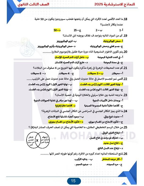 نماذج امتحان الاحياء ثانوية عامة 2025، أهم الأسئلة