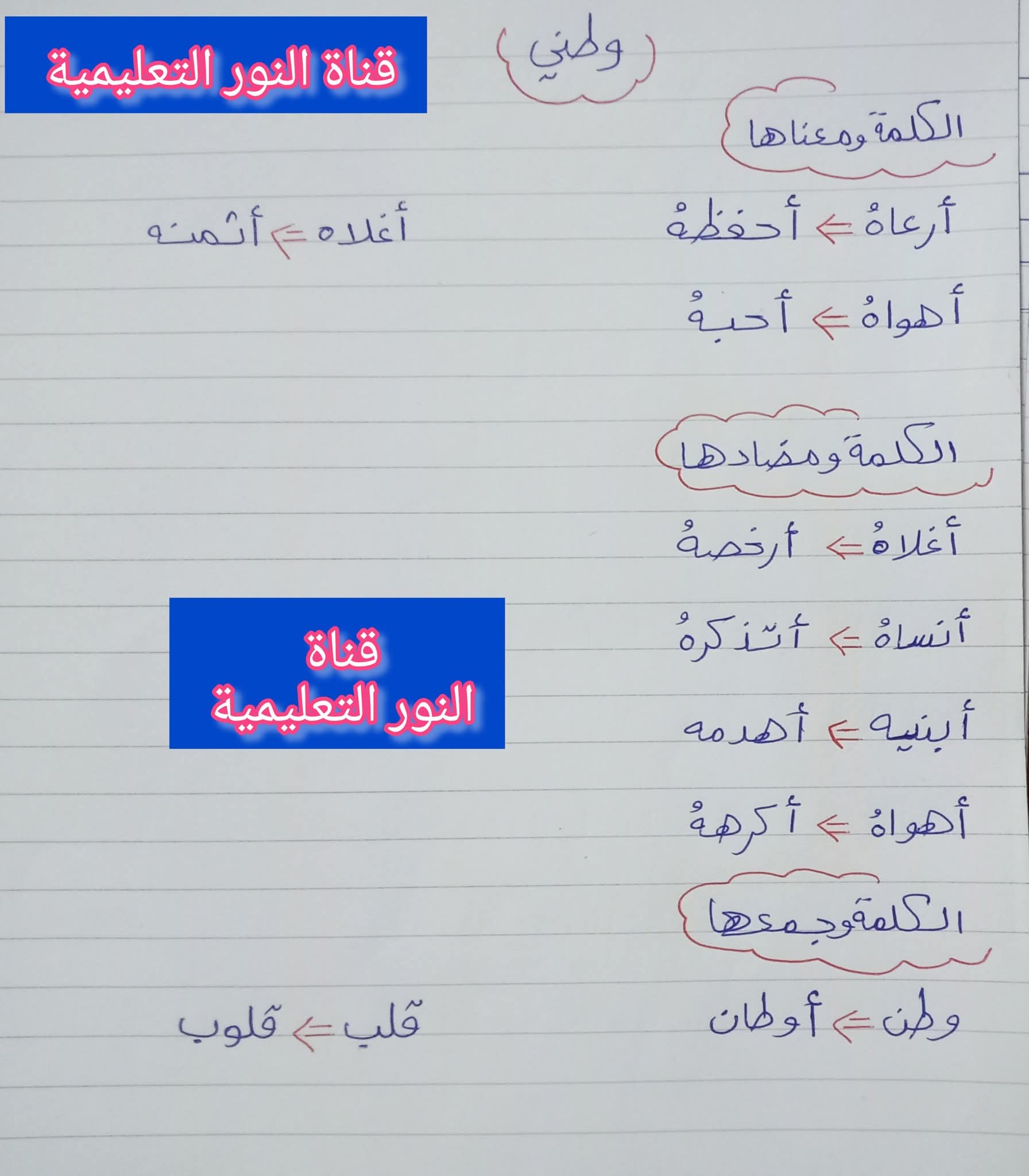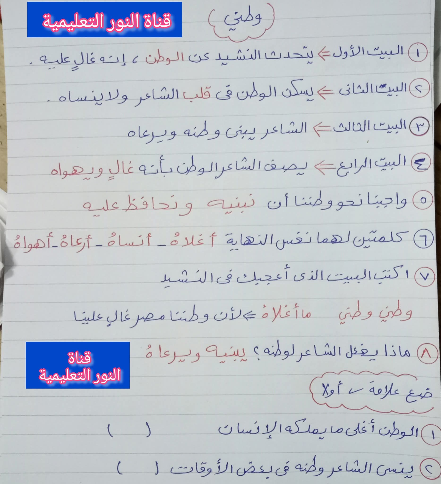 شرح نشيد وطني للصف الثالث الابتدائي وأهم الأسئلة