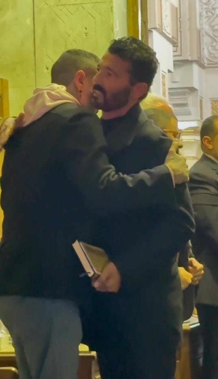 منة شلبي تساند أحمد الفيشاوي في عزاء والدته سمية الألفي