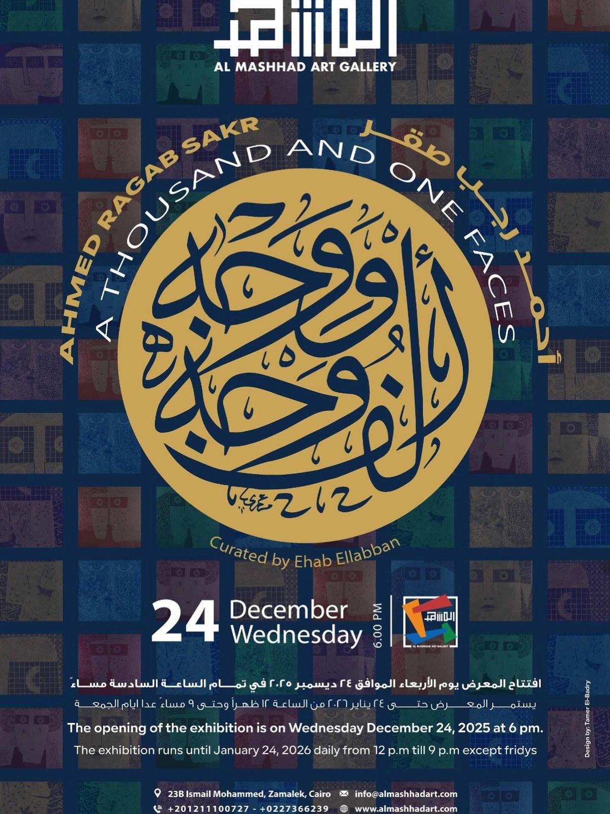 يستعد جاليري المشهد بالزمالك، لافتتاح معرض "ألف وجه ووجه" للفنان التشكيلي أحمد رجب صقر، غدا الأربعاء 24 ديسمبر الجاري، في تمام الساعة السادسة مساء، وبذلك بحضور عدد كبير من الفنانين التشكيليين والإعلاميين وبعض من الشخصيات العامة.